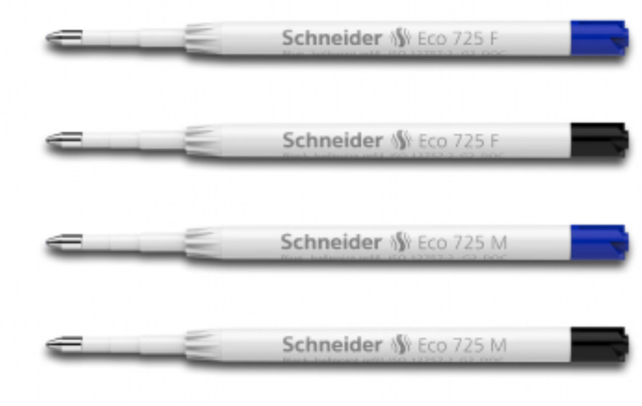 Die Großraum-Mine ECO 725 von Schneider macht Schreiben zum Vergnügen - der leichte und gleichmäßige Pastenfluss sorgt für ein sauberes Schriftbild. Die Mine garantiert nicht nur ein angenehmes Schreibgefühl, sondern schont dabei noch die Umwelt: Das Gehäuse besteht zu 95% aus recyceltem Kunststoff und stärkt damit einen effizienten Rohstoff-Kreislauf. Sie wird umweltfreundlich und schadstoffarm in Deutschland produziert und ist auf eine lange Nutzungsdauer ausgelegt.