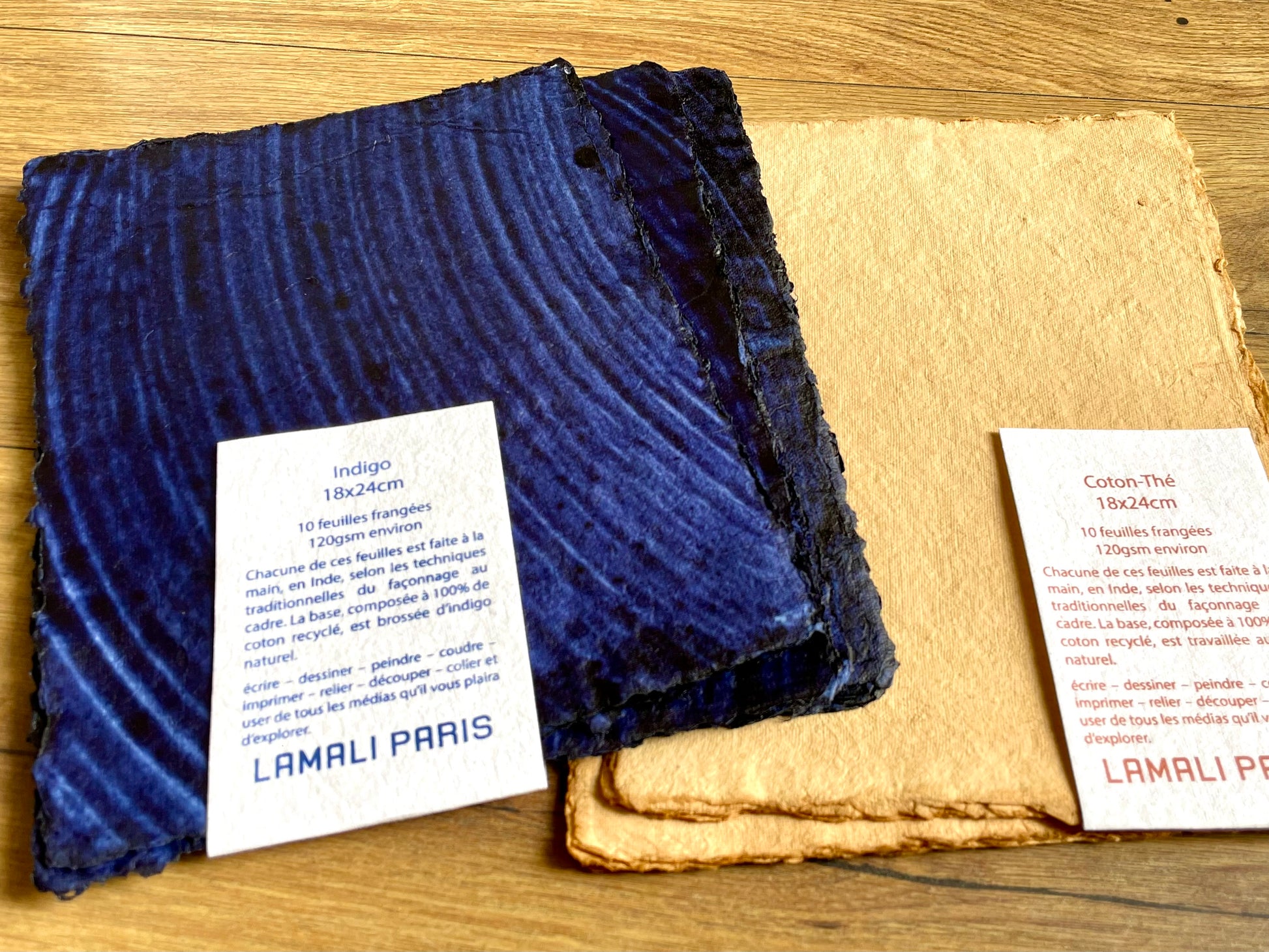 10 handgeschöpfte und fair gehandelte Bogen aus recycelter Baumwolle, in Indien hergestellt.