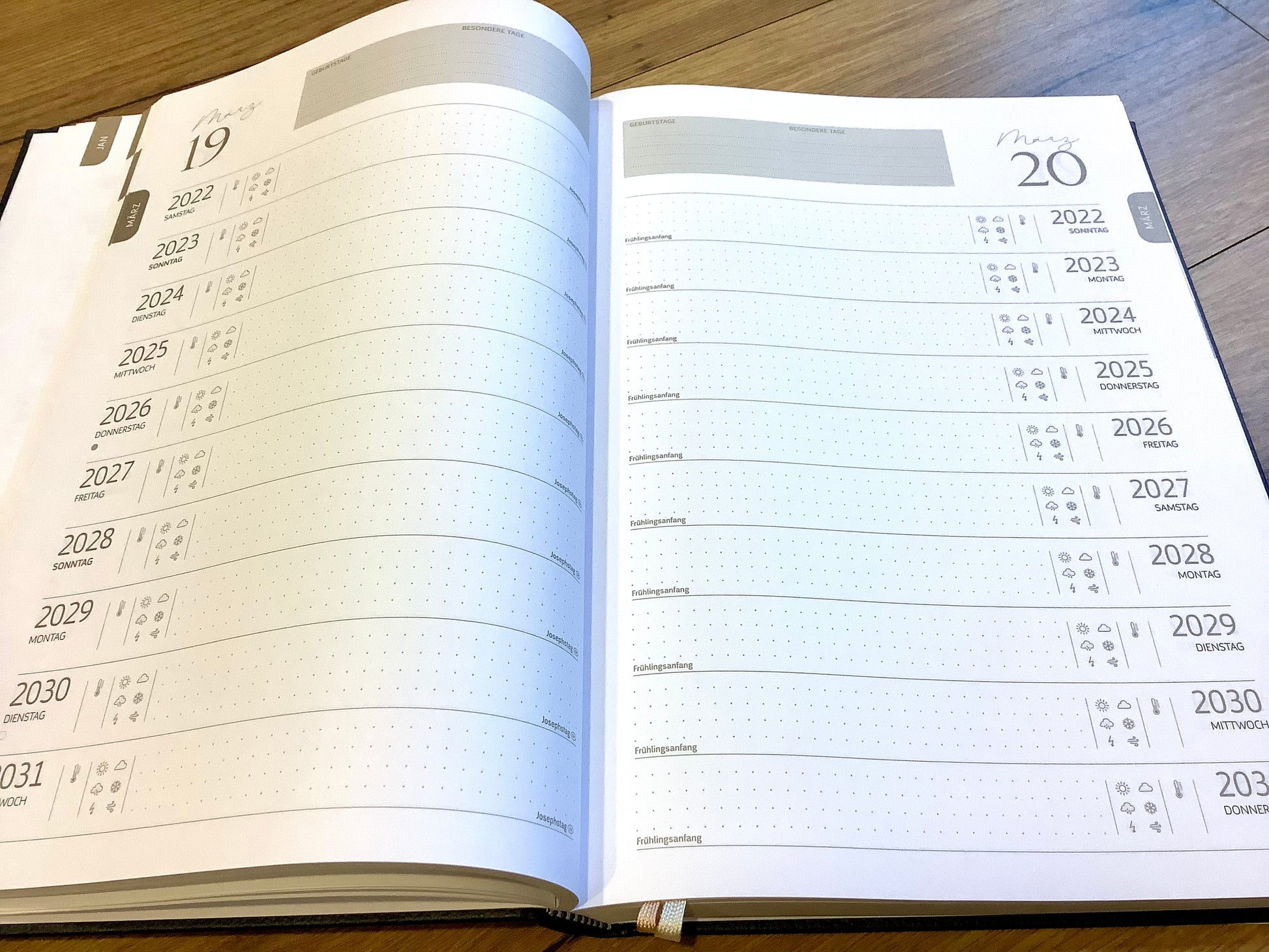Ein Notiz-Tagebuch-Kalender für 10 Jahre von Brunnen.