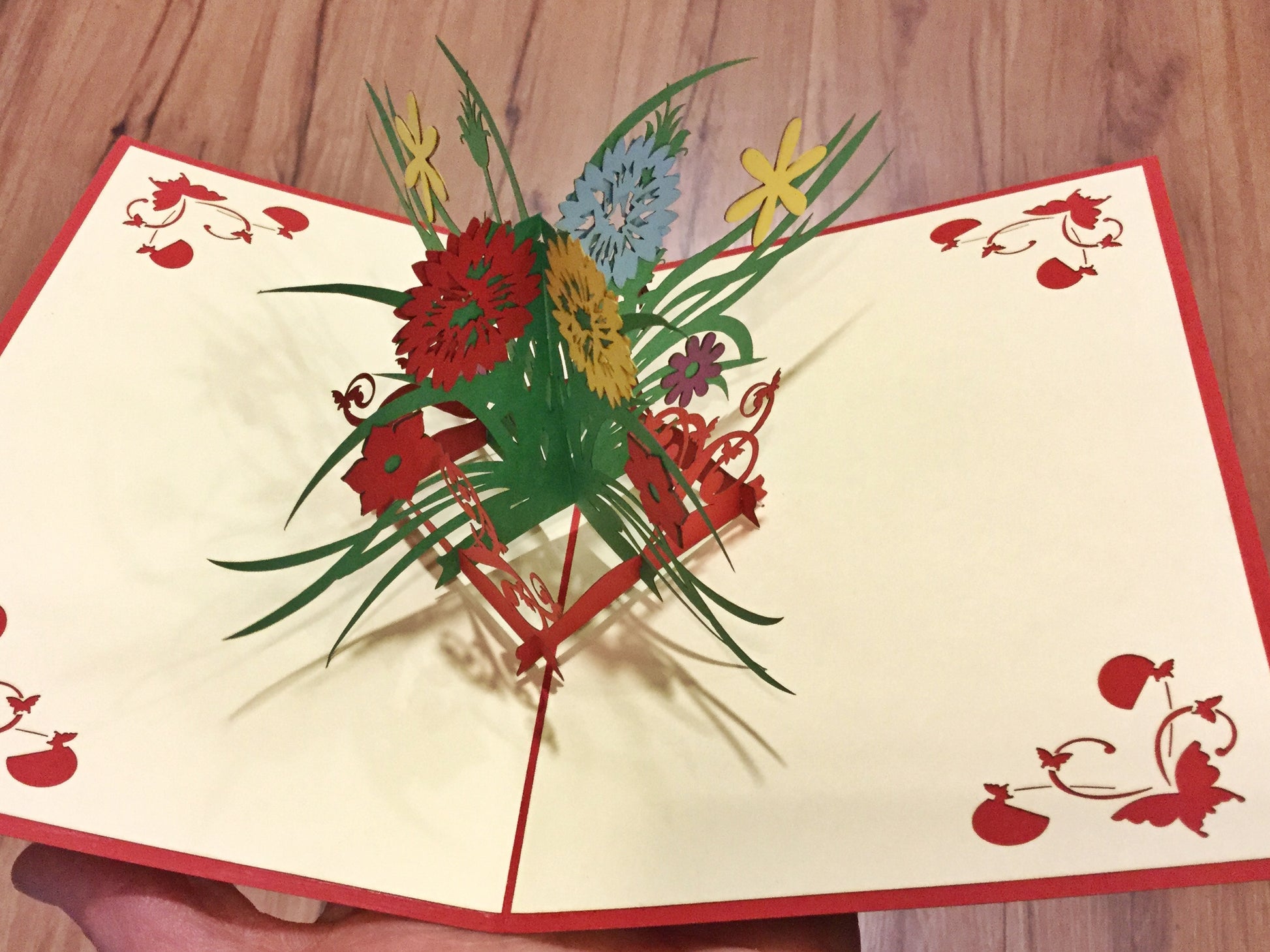 Eine ganz besondere Karte zum Geburtstag, zum Jubiläum, zum besonderen Dank oder einfach aus Liebe - egal zu welchem Anlass: der oder die Beschenkte wird sich bestimmt freuen über diese dreidimensionale Pop-up-Karte, aus der sich beim Öffnen ein Blumenstrauß aus feinem Papier entfaltet.
