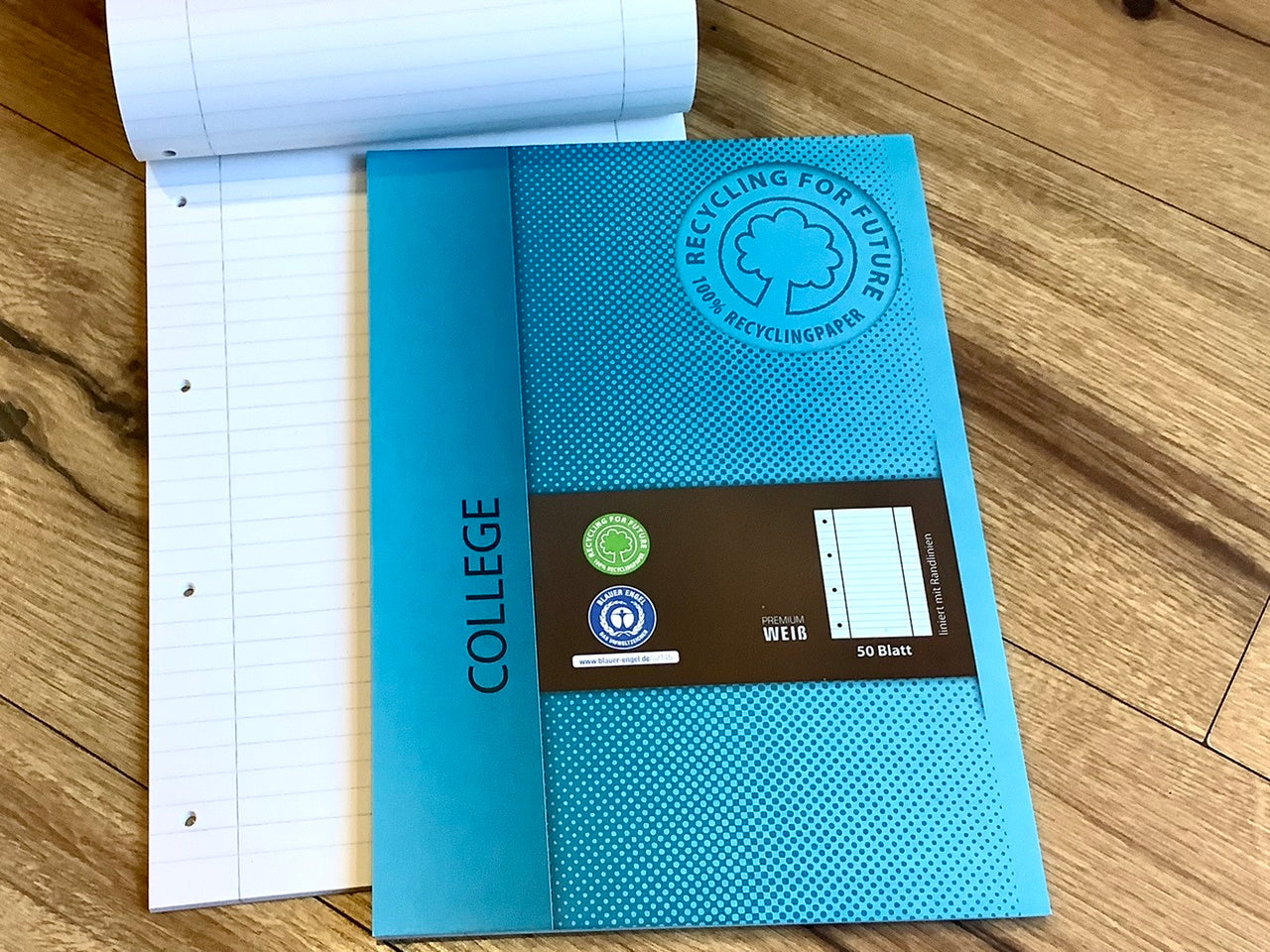 Linierter Schulblock in DIN A4-Größe.
