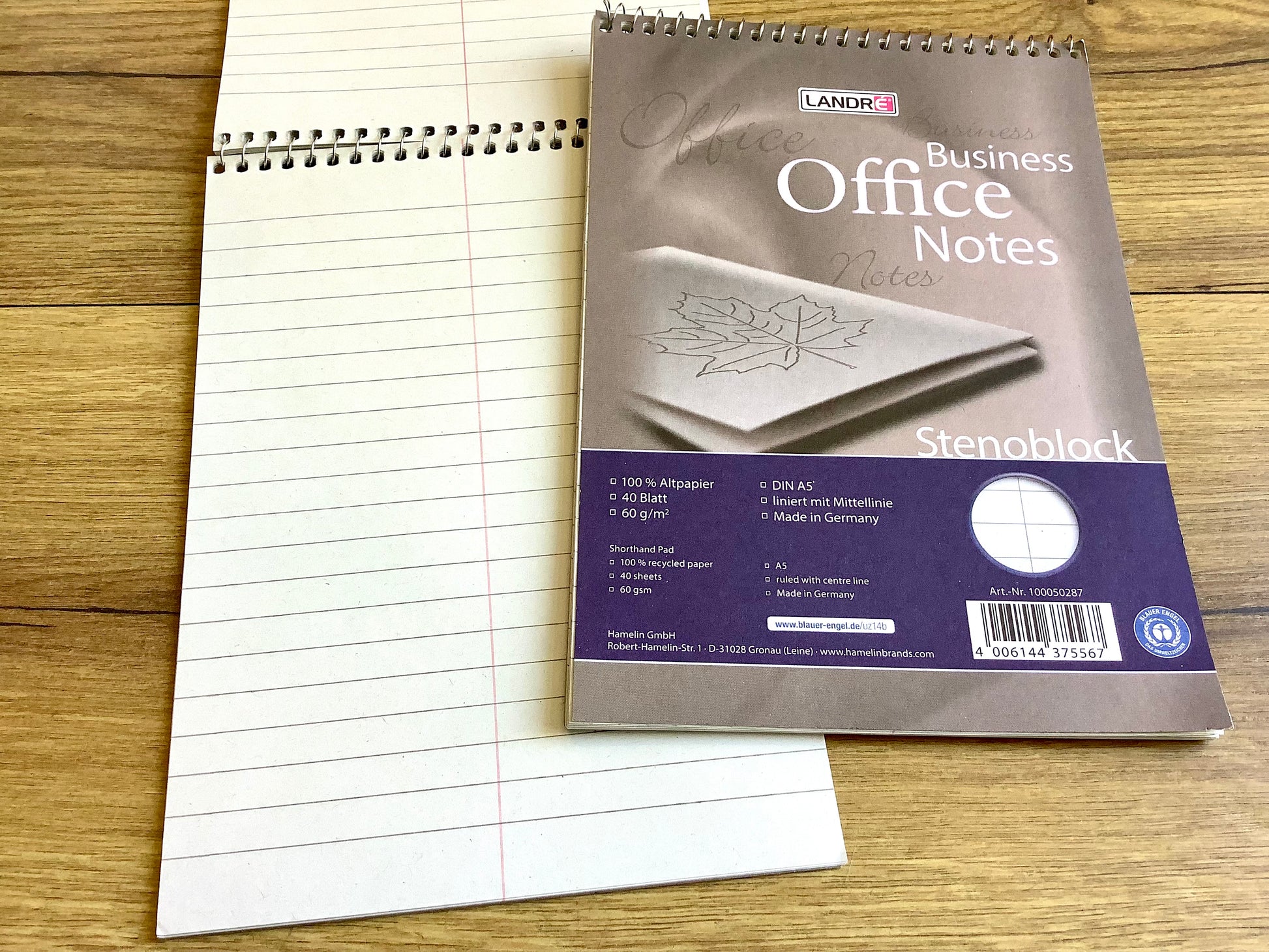 Umweltfreundlicher A5-Notizblock aus Recyclingpapier mit Spiralbindung oben