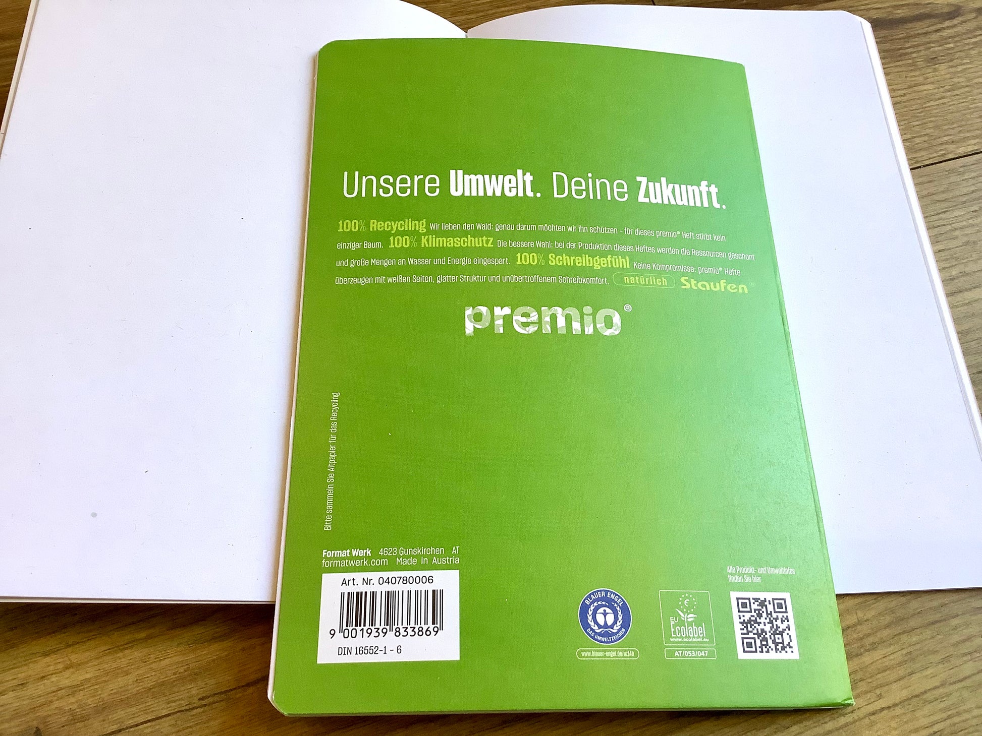 - Premiumheft mit einer Papierstärke von 90 g/m²