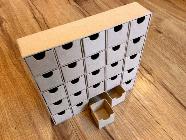 Adventskalender Decopatch Pappe 24 Schubladen 25x25cm