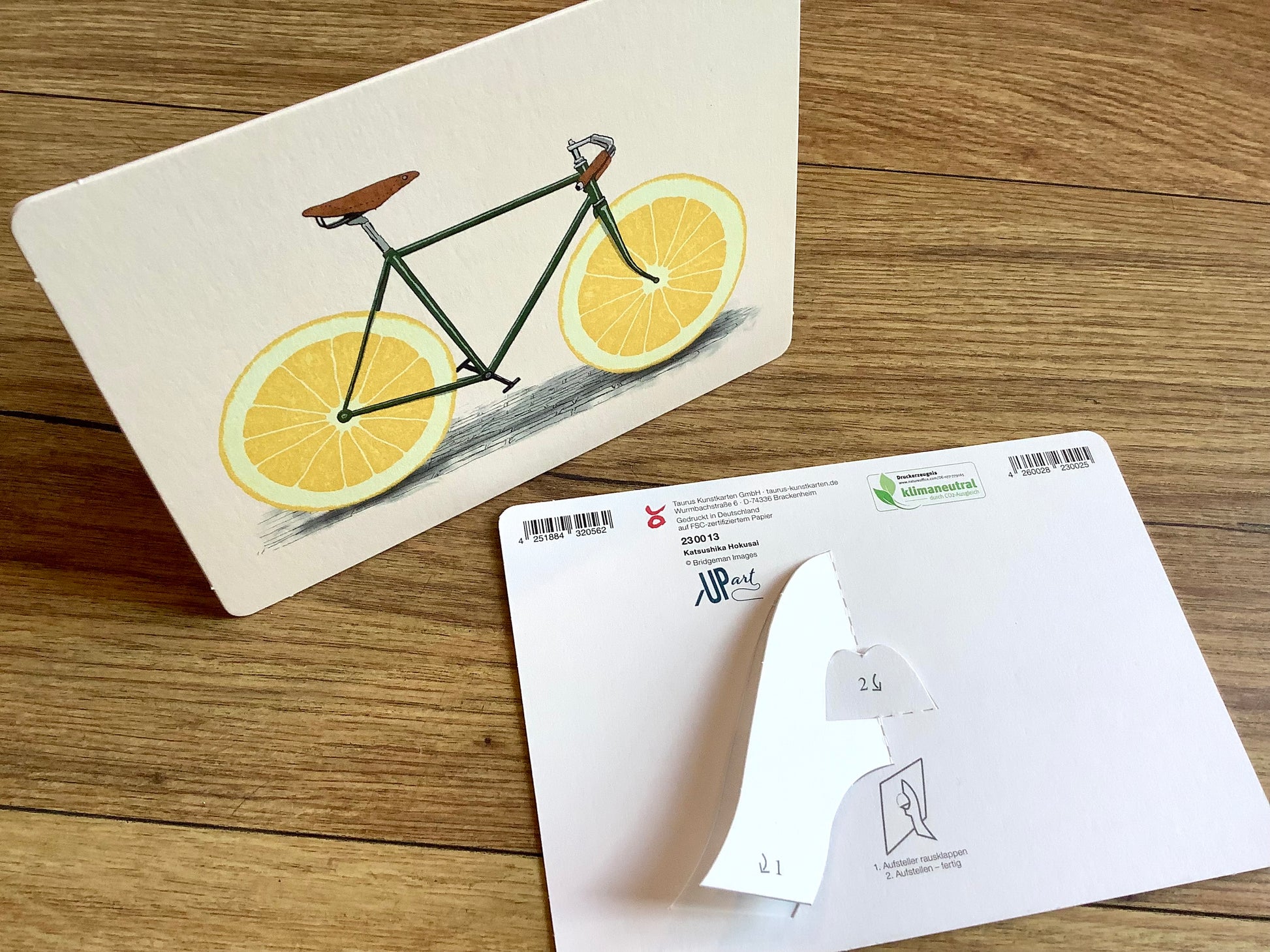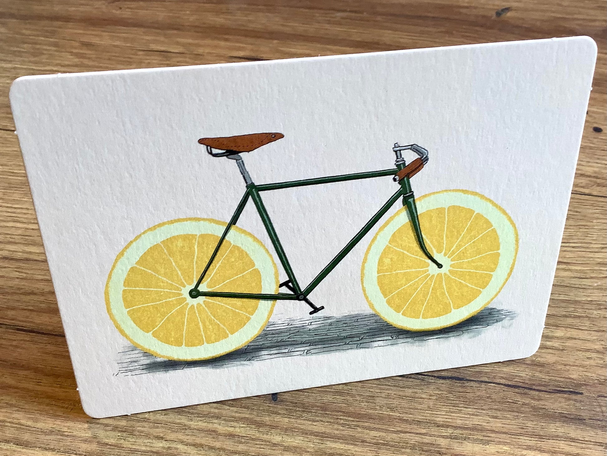 Aufstell-Karte "Zest" (Zitronen-Fahrrad)