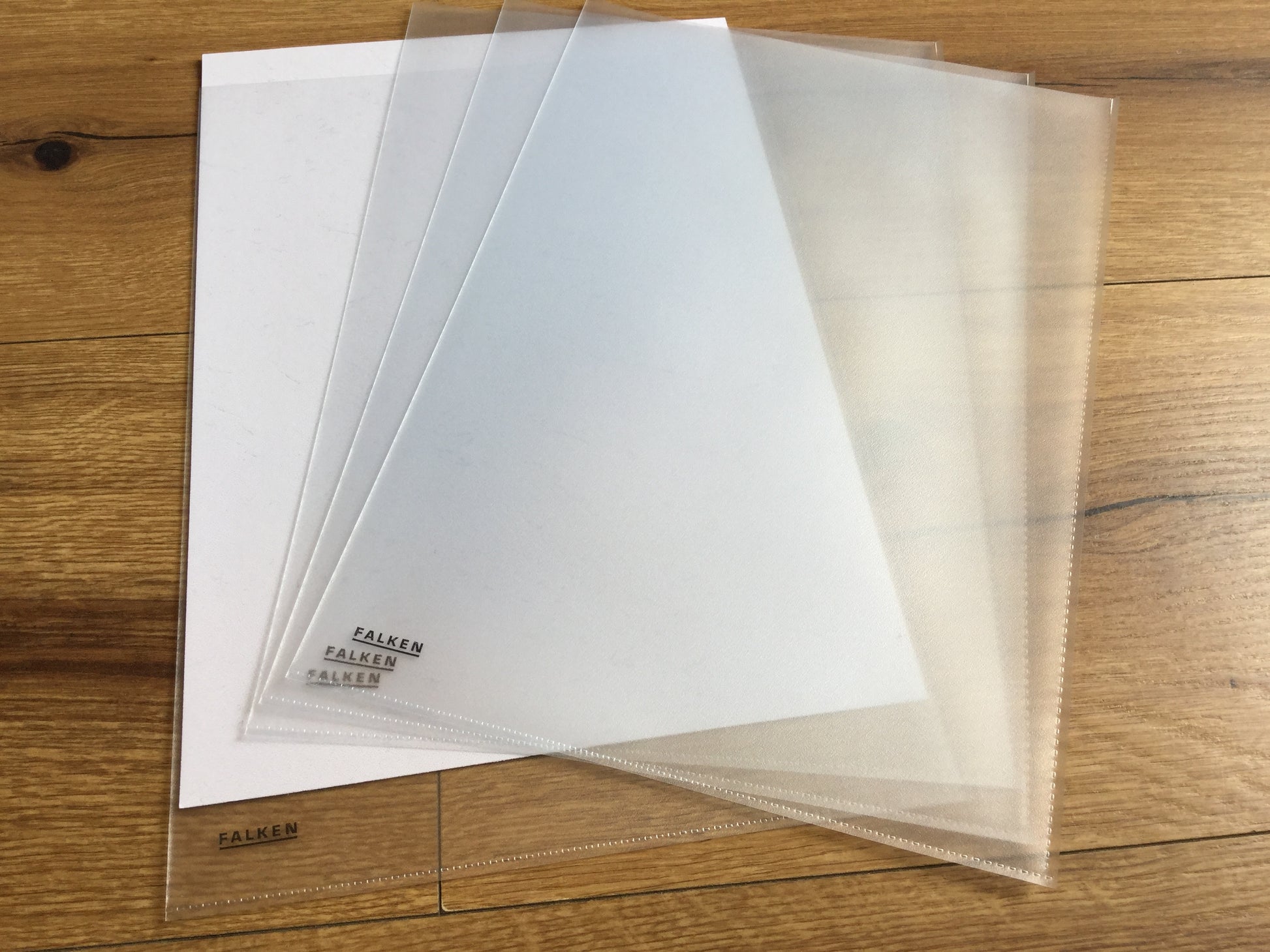 Ausweishülle (nur oben offen) aus PP (Polypropylen), ohne PVC, transparent, genarbt. Falken
