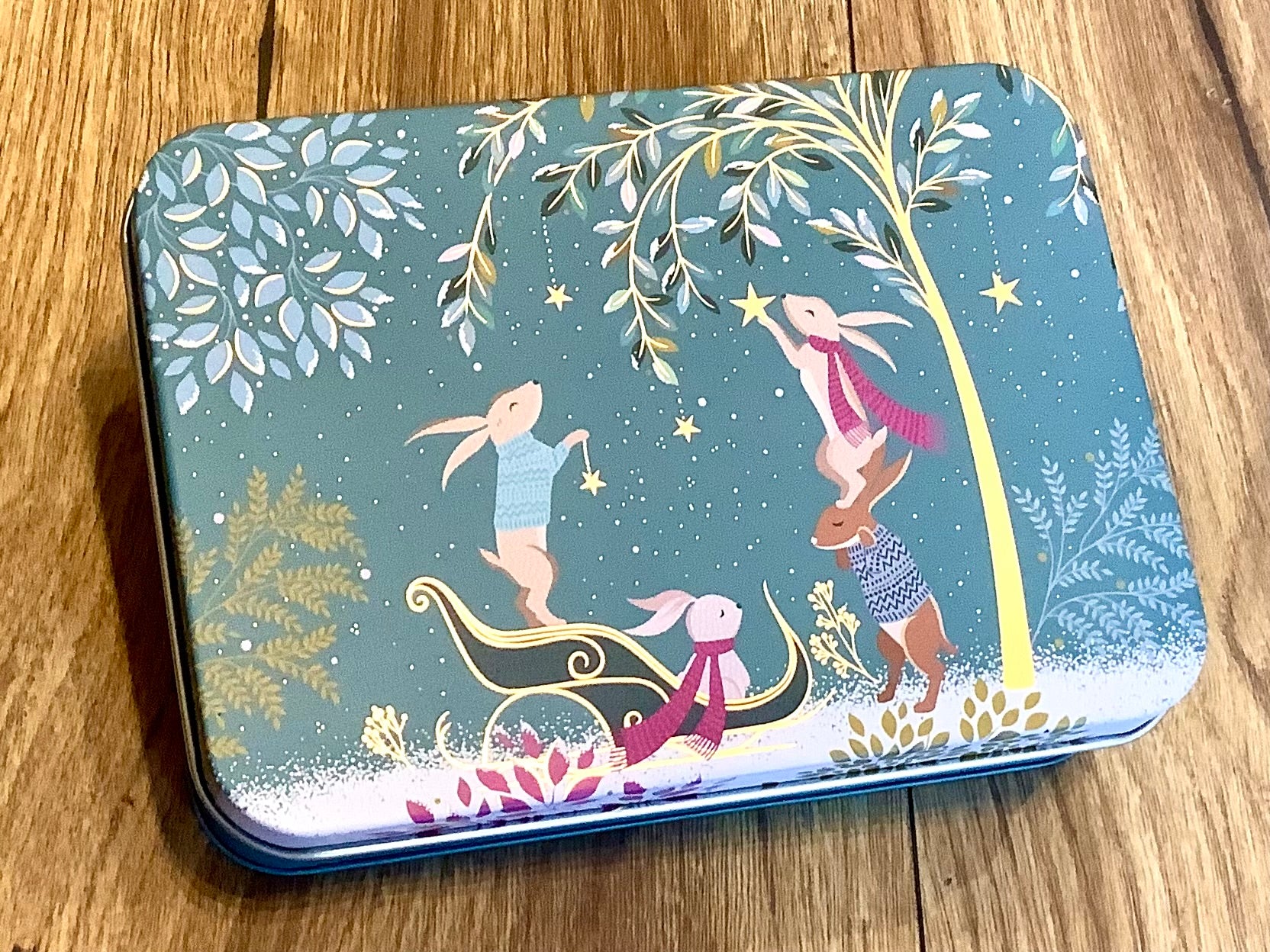 Blechdose 14x10x4cm Sara Miller X-Mas-Hasen