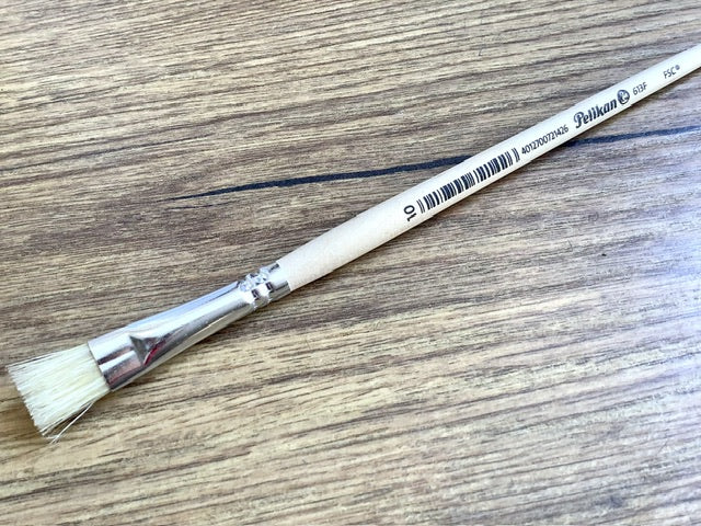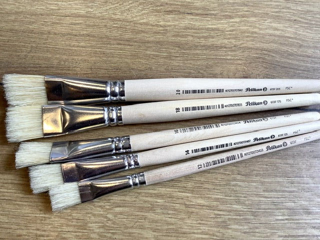 Flachpinsel mit kurzen Borsten (Schweineborsten).