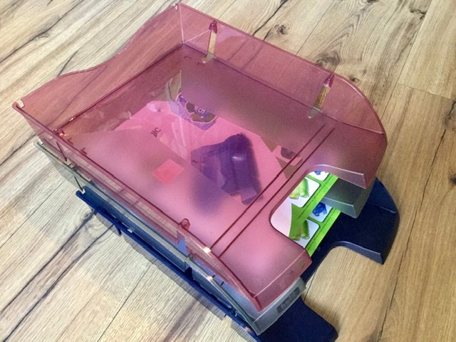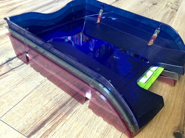 - in drei transluzenten Farben erhältlich (die Ablage in rot gibt es demnächst nicht mehr)
