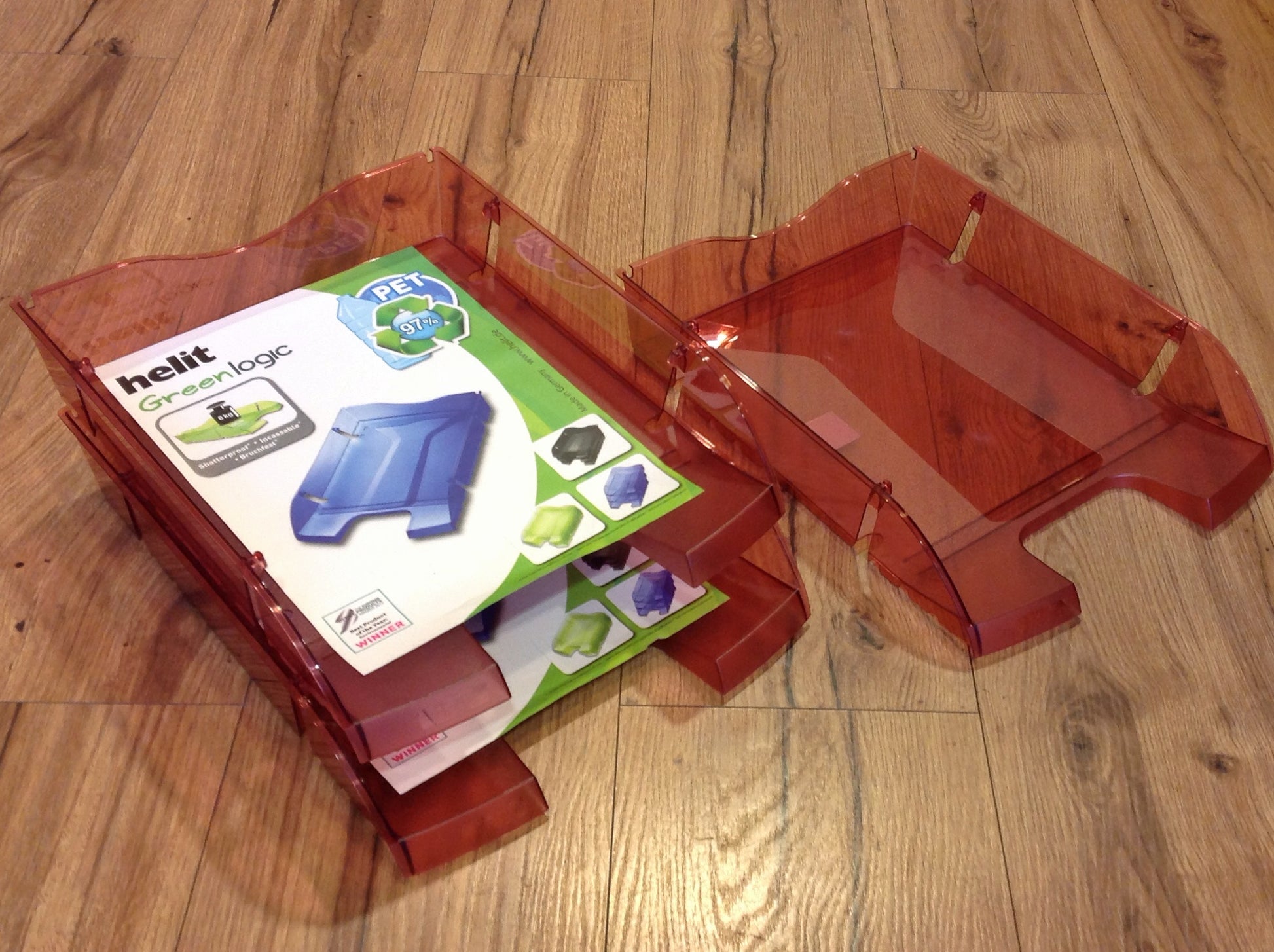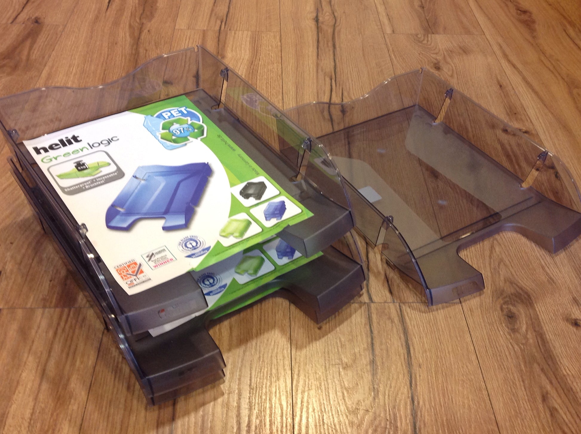 Gebrauchte PET-Flaschen gehen neue Wege: Recycling mit Mehrwert bietet diese zu 97 % aus recycelten PET-Flaschen hergestellte Briefablage. Und dabei sieht sie auch noch cool aus.