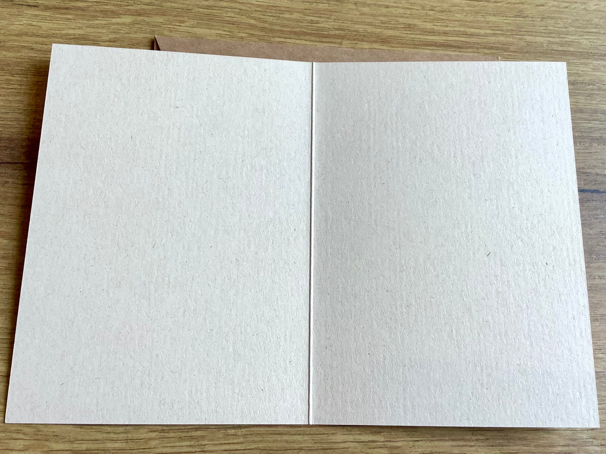 Kleine Doppelkarte aus Zuckerrohrkarton mit Umschlag aus Recyclingpapier (Spitzklappe).