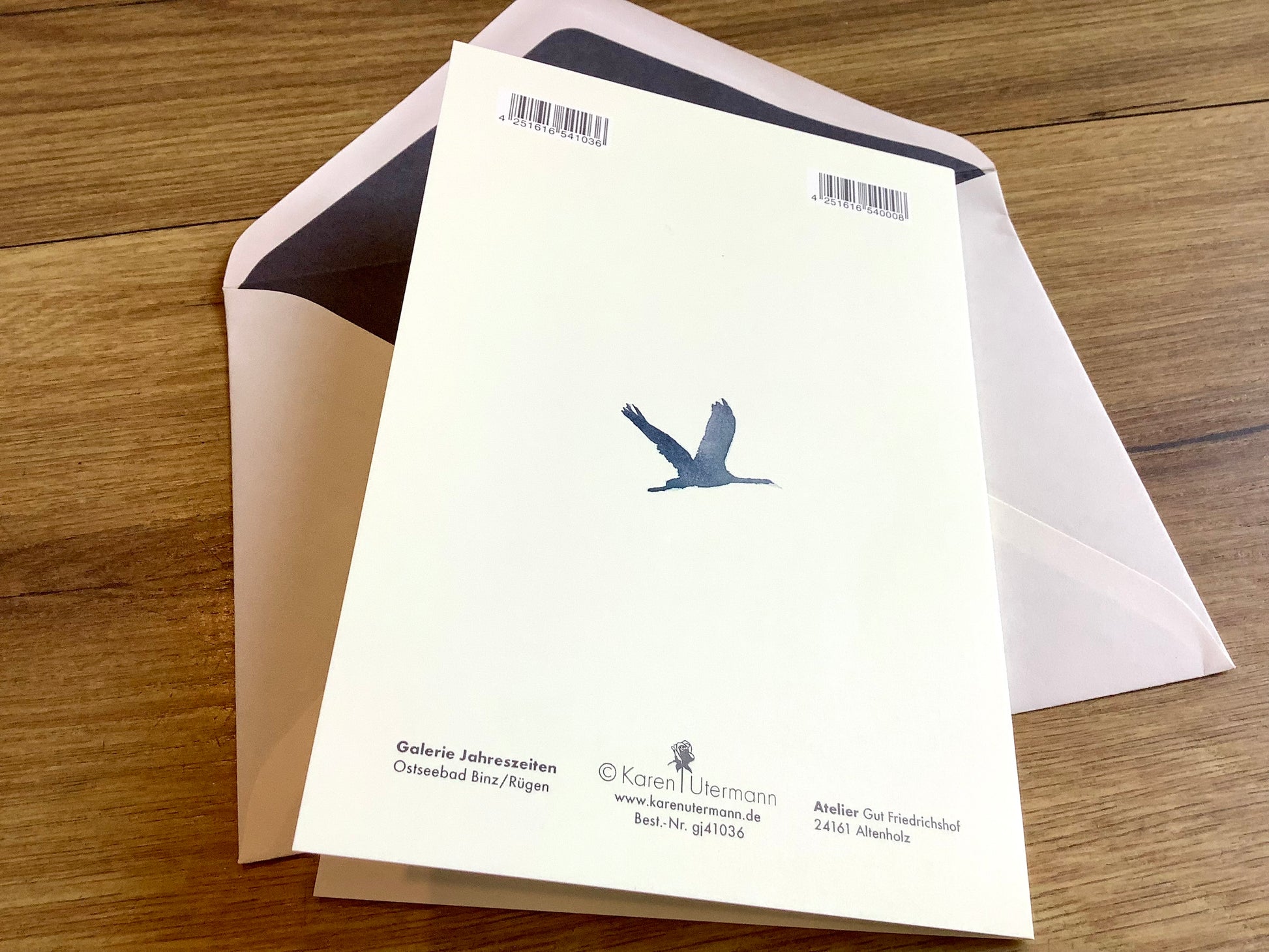 Klappkarte mit einer zurückhaltenden Aquarell-Illustration von Karen Utermann (Binz / Rügen).
