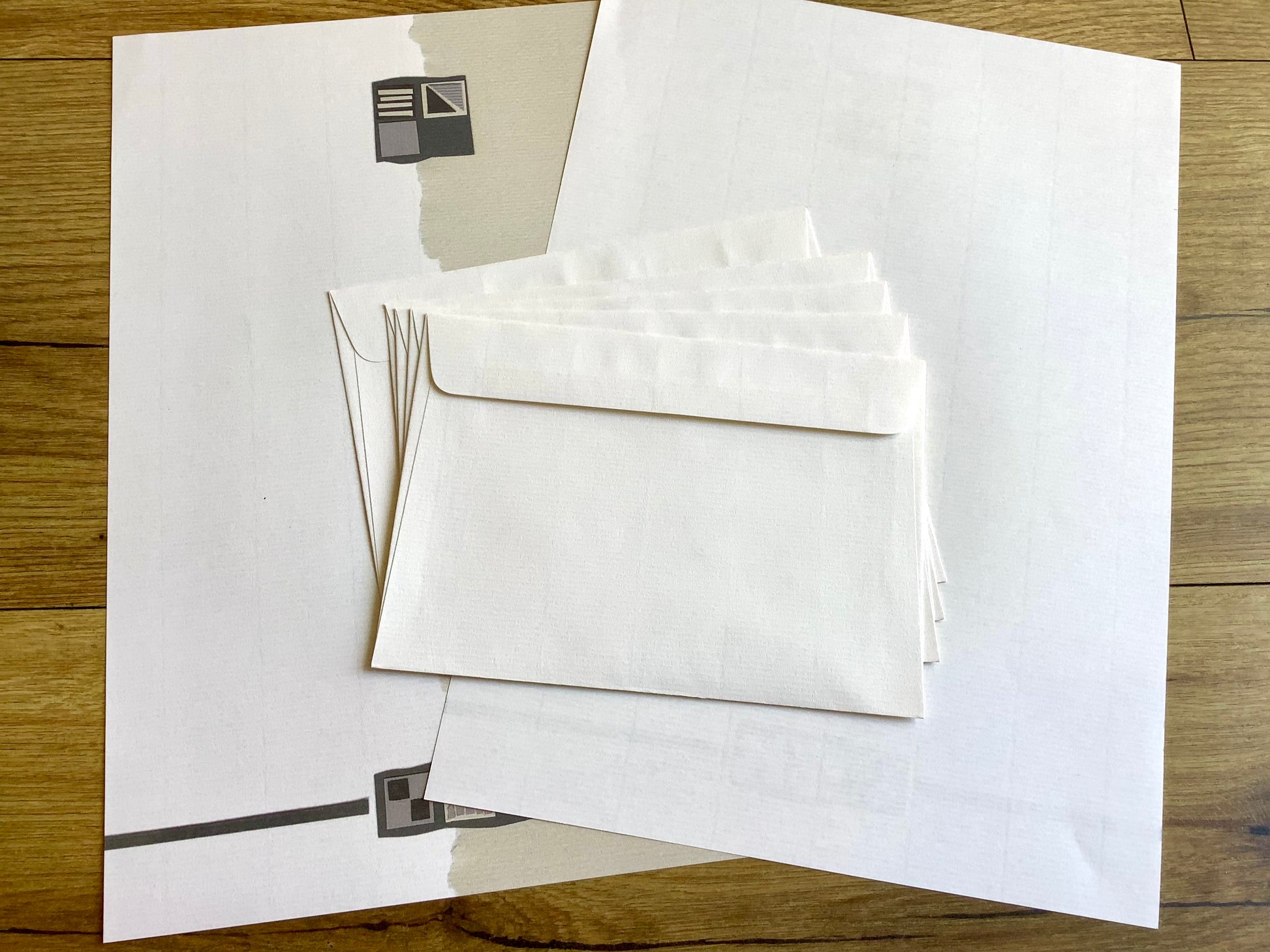 Schreibset / Briefpapier-Set aus 10 Blatt geripptem Feinpapier DIN A4 und 5 passenden C6-Kuverts.