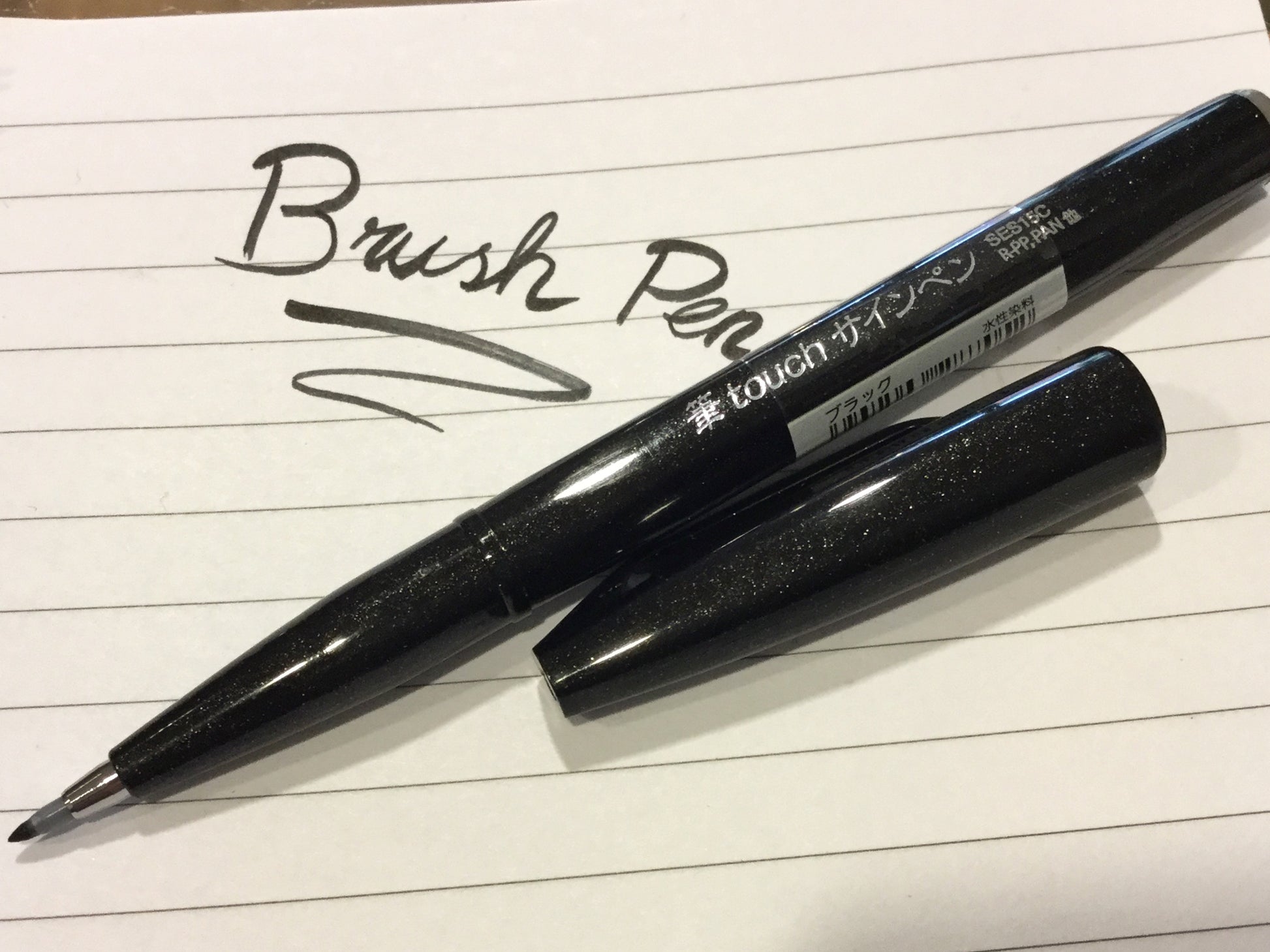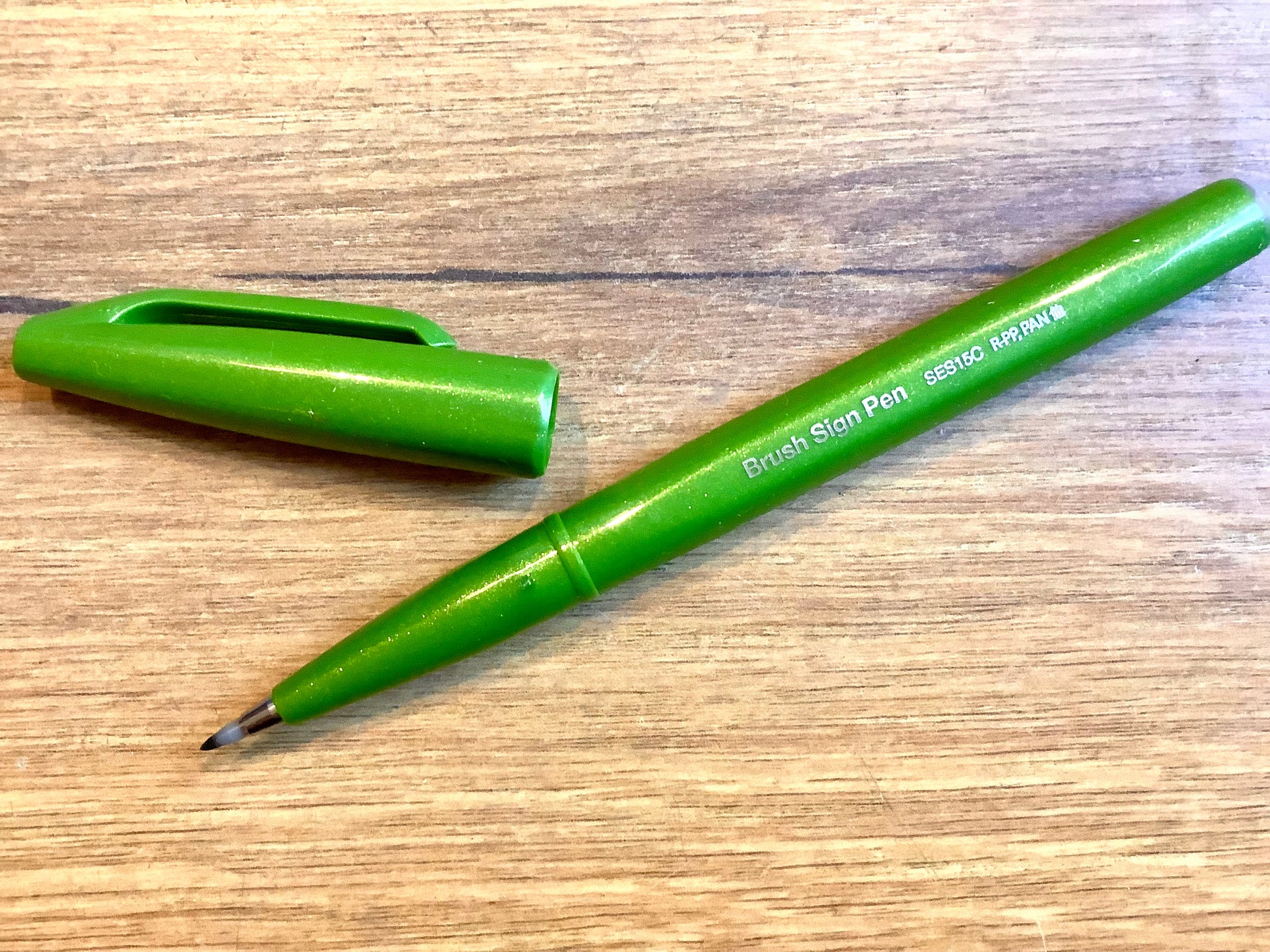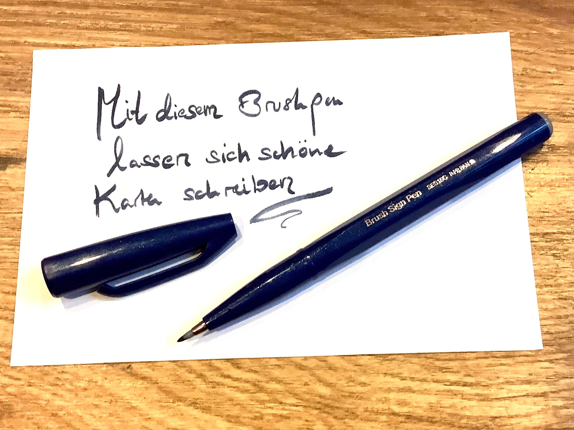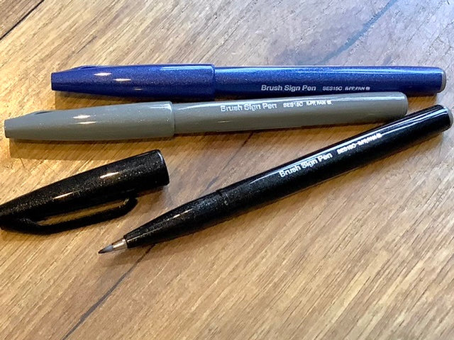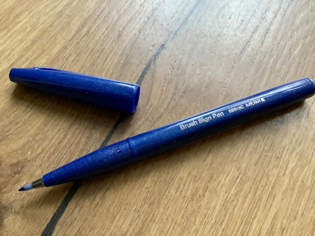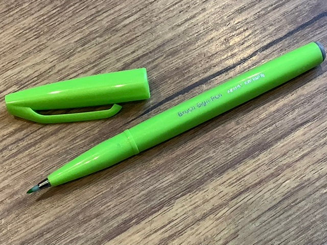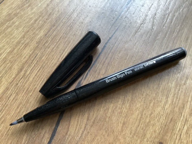 Der „Brush Sign Pen“ von Pentel hat eine flexible Spitze aus Acryl für Handlettering oder Kalligrafie mit Tinte auf Wasserbasis.