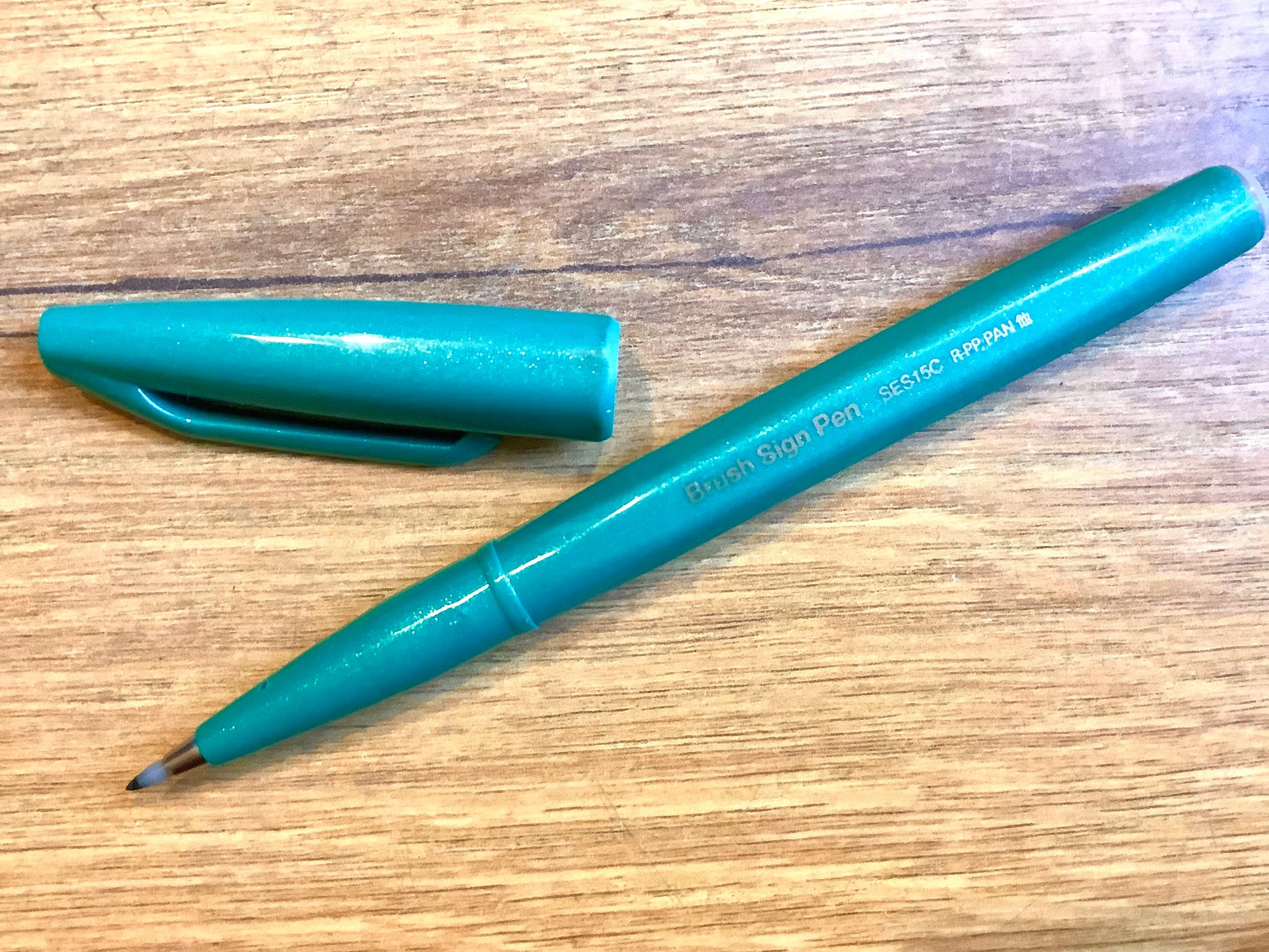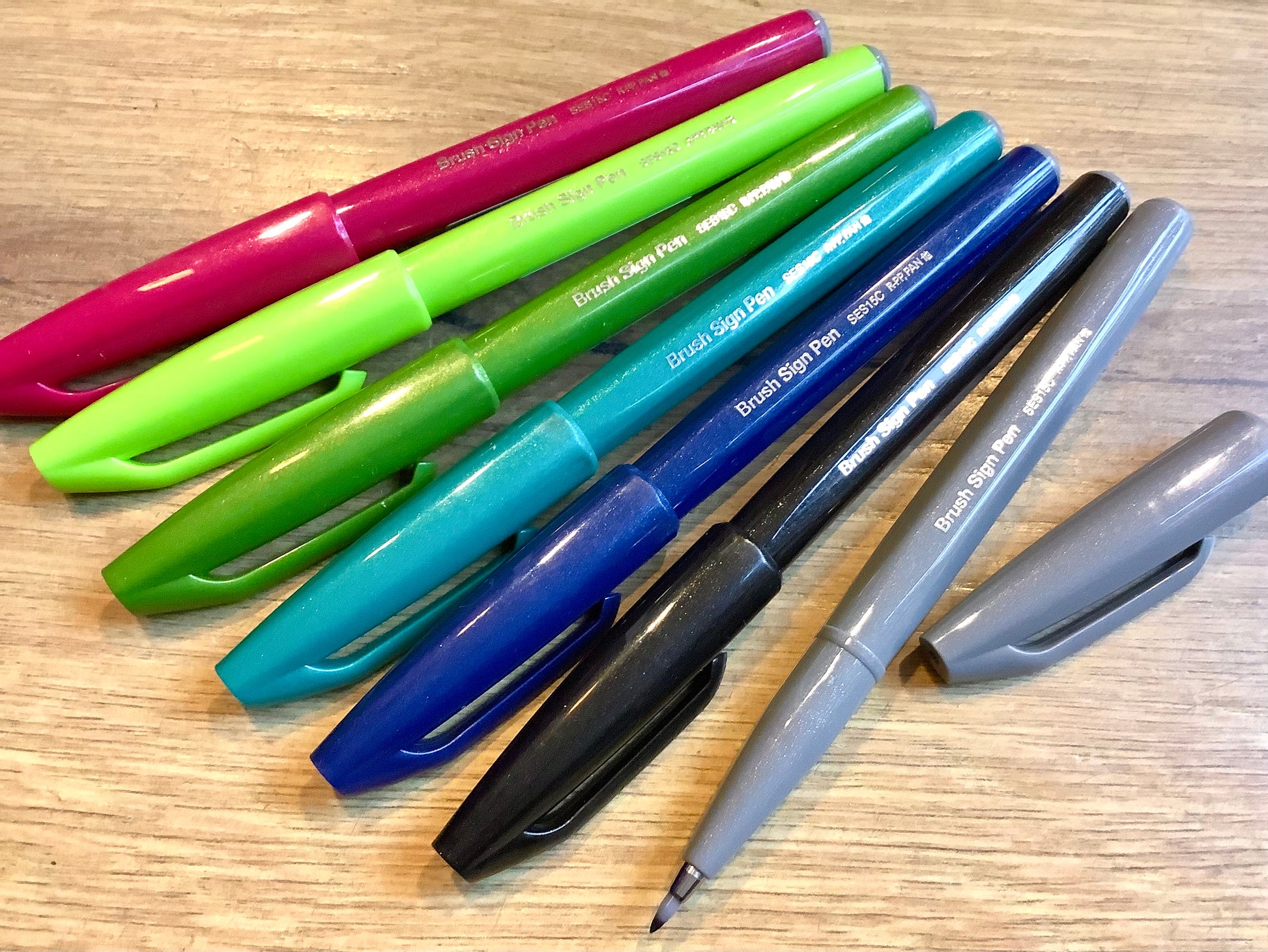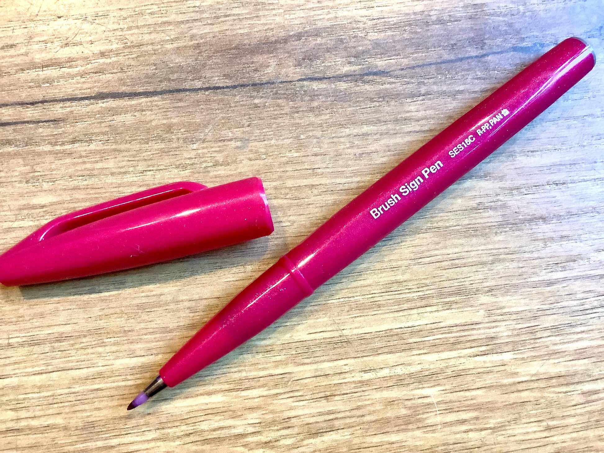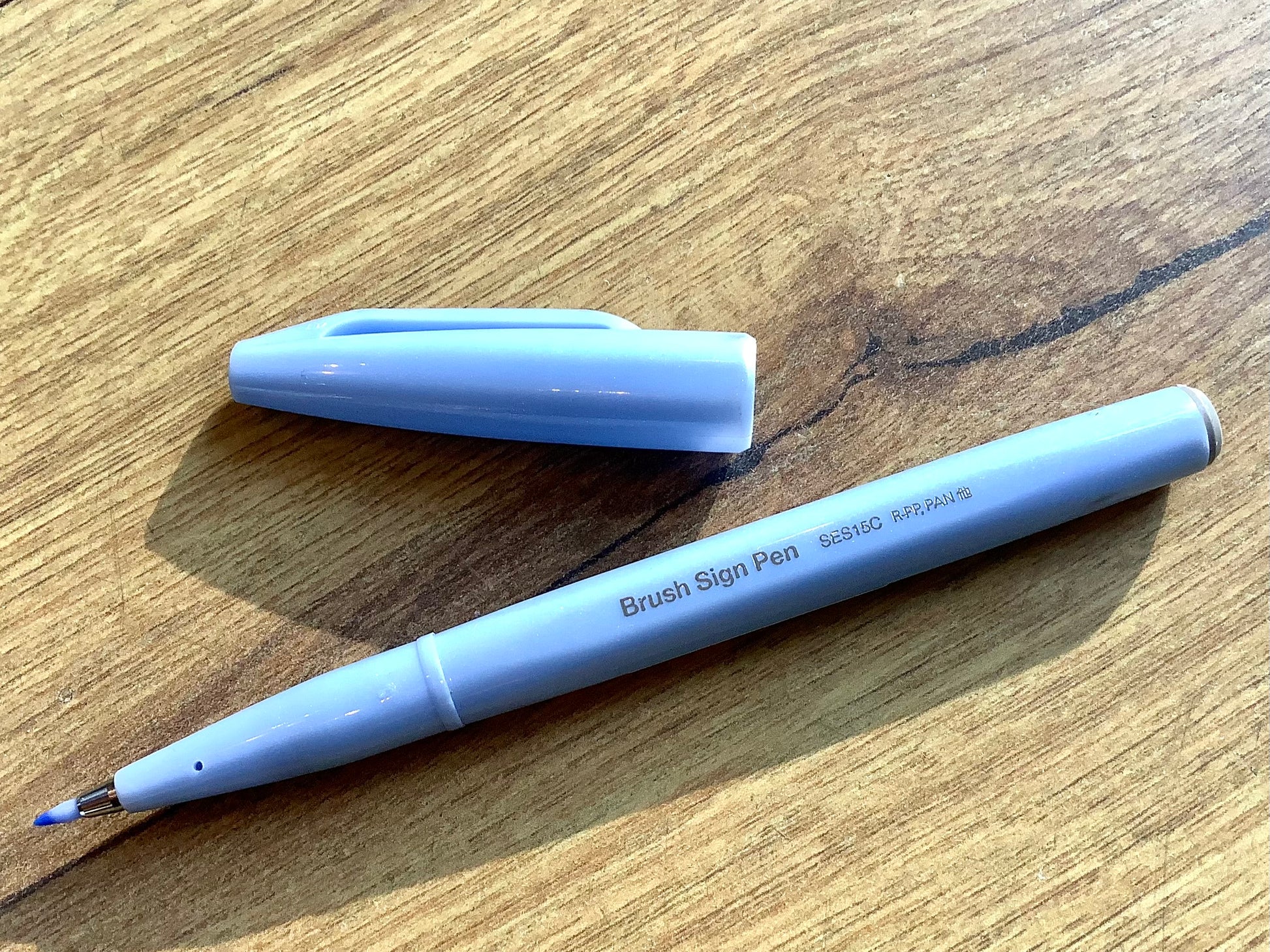 Der „Brush Sign Pen“ von Pentel hat eine flexible Spitze aus Acryl für Handlettering oder Kalligrafie mit Tinte auf Wasserbasis.