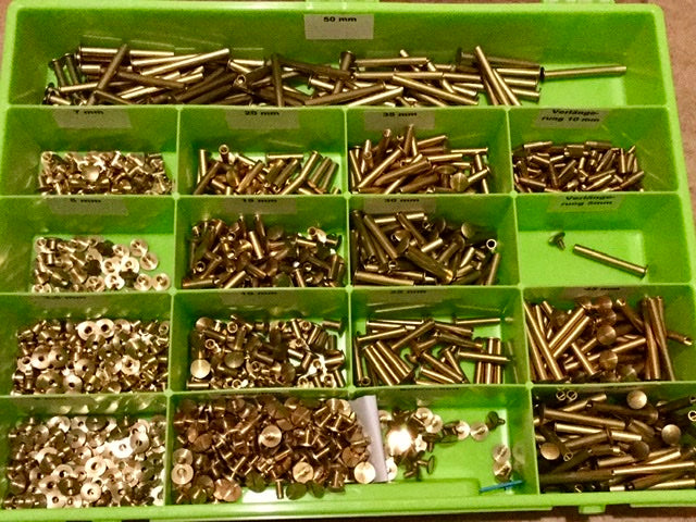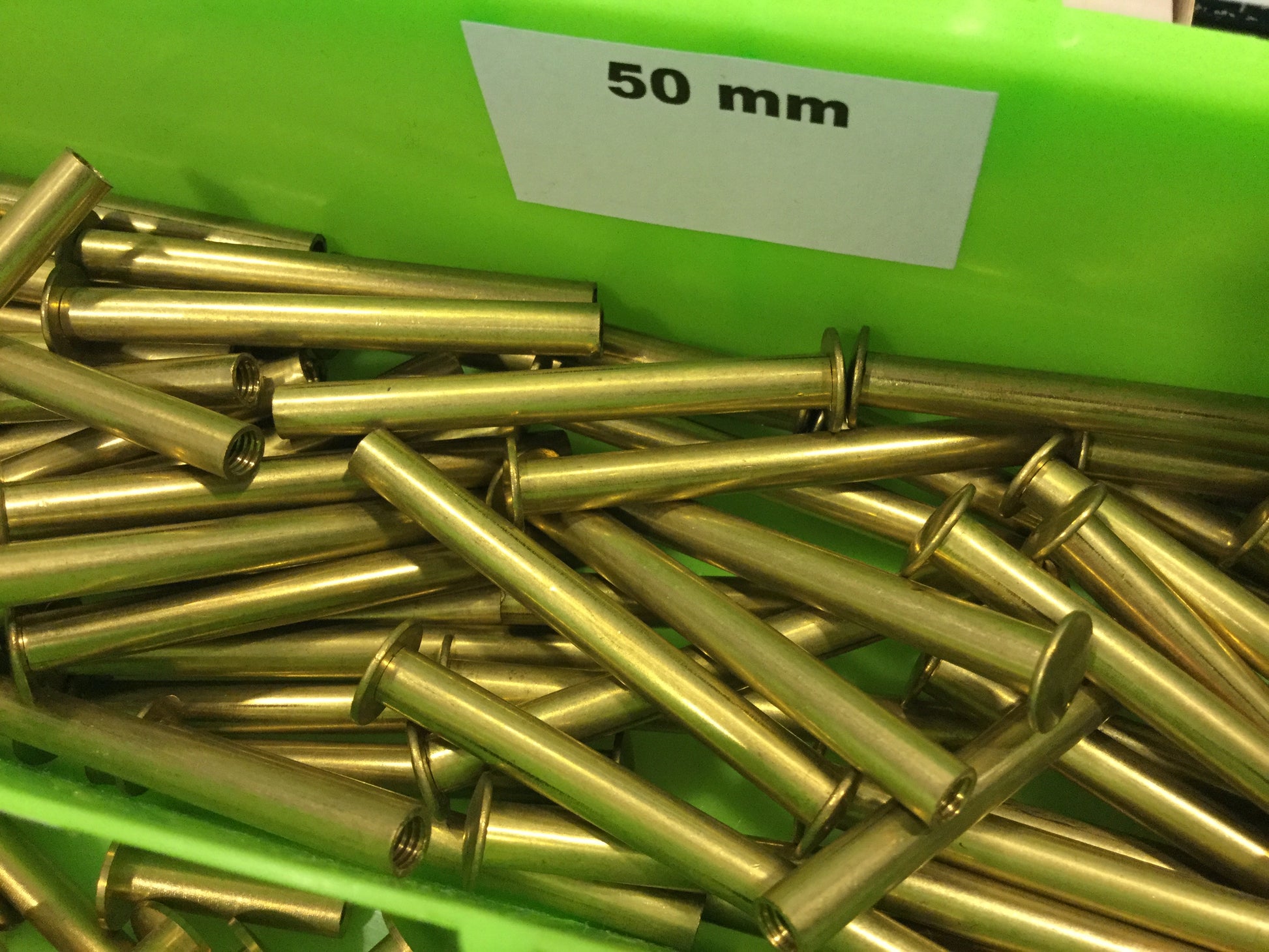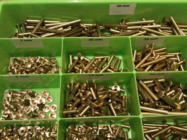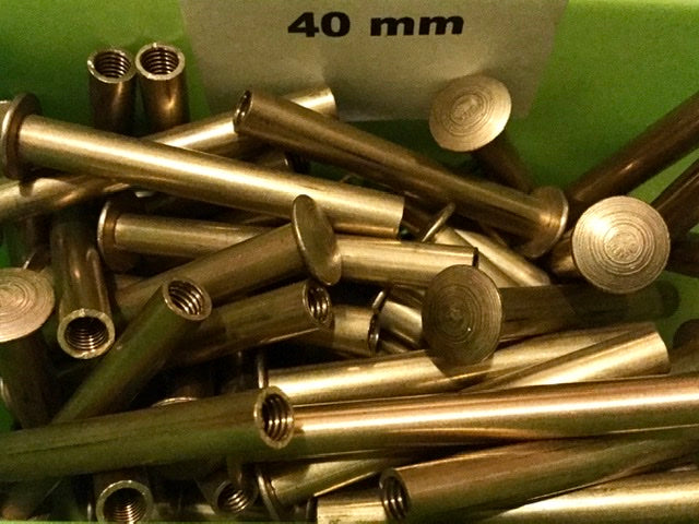 Ersatzteile / Ergänzungsschrauben für Schraubmappen in messingfarben.