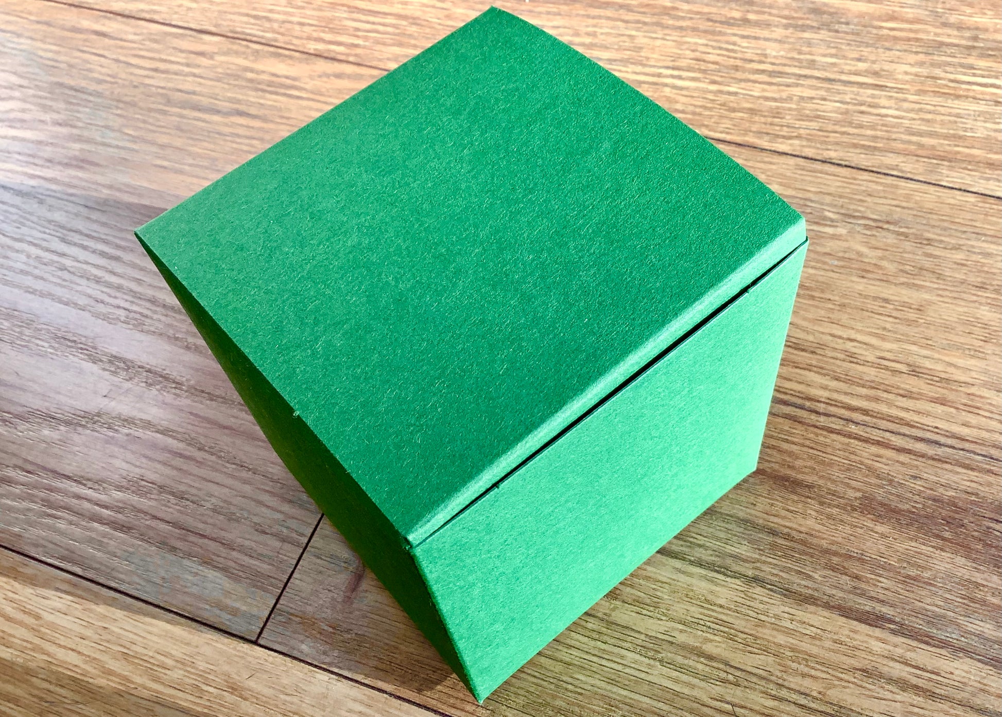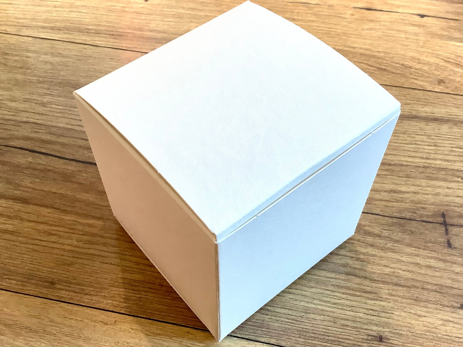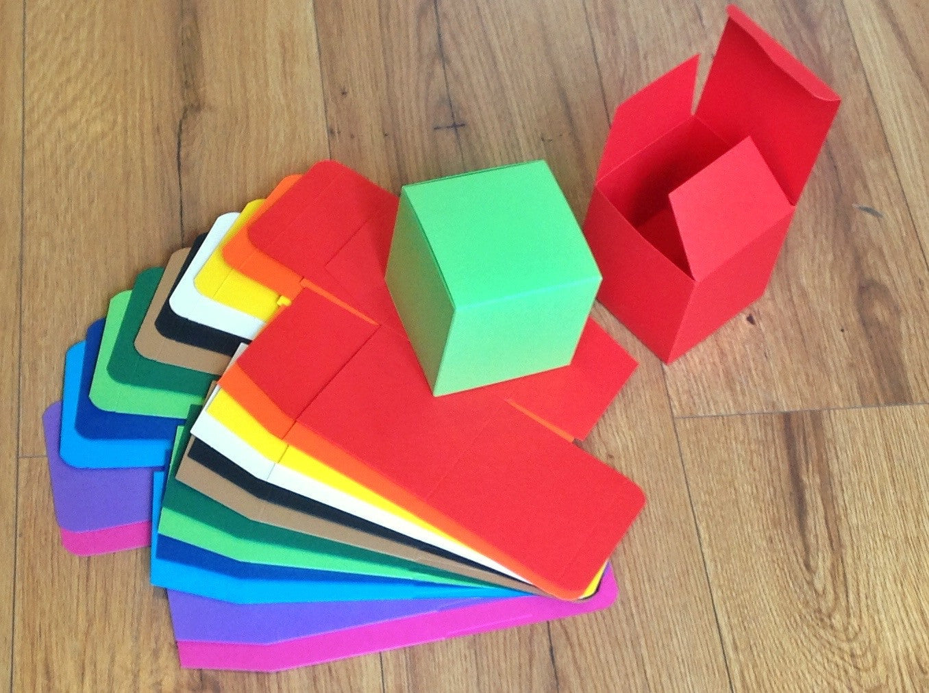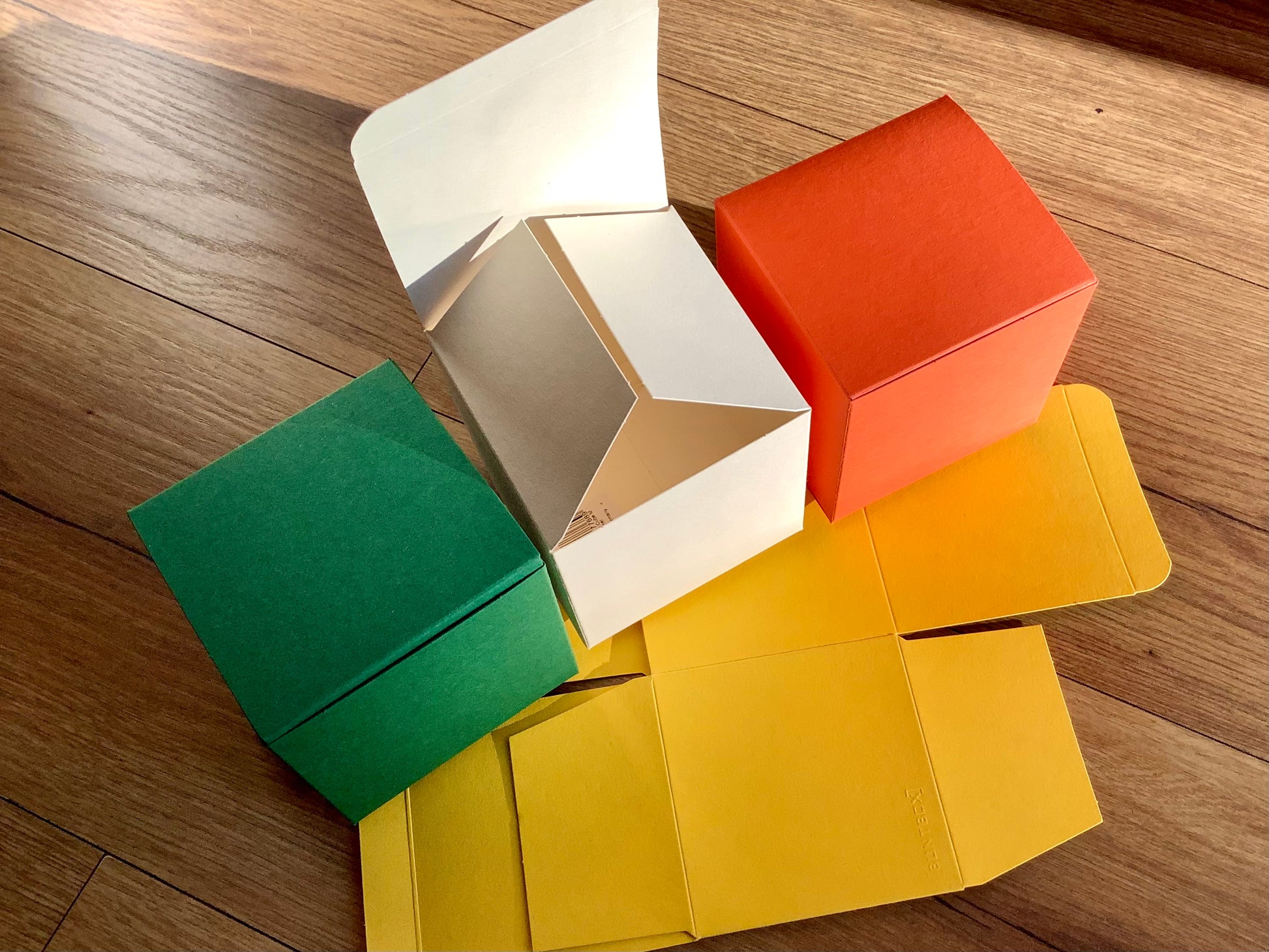 Einfarbiger Würfel aus 100 % Recyclingkarton als umweltfreundliche, hübsche und sehr preiswerte Geschenkverpackung.