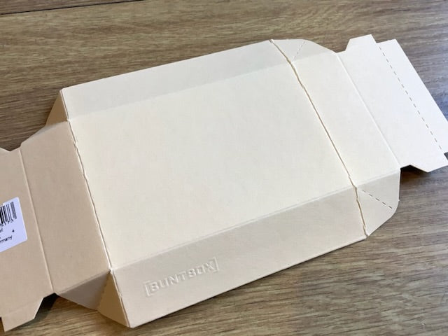Die BUNTBOX ist eine Verpackung aus Altpapier.