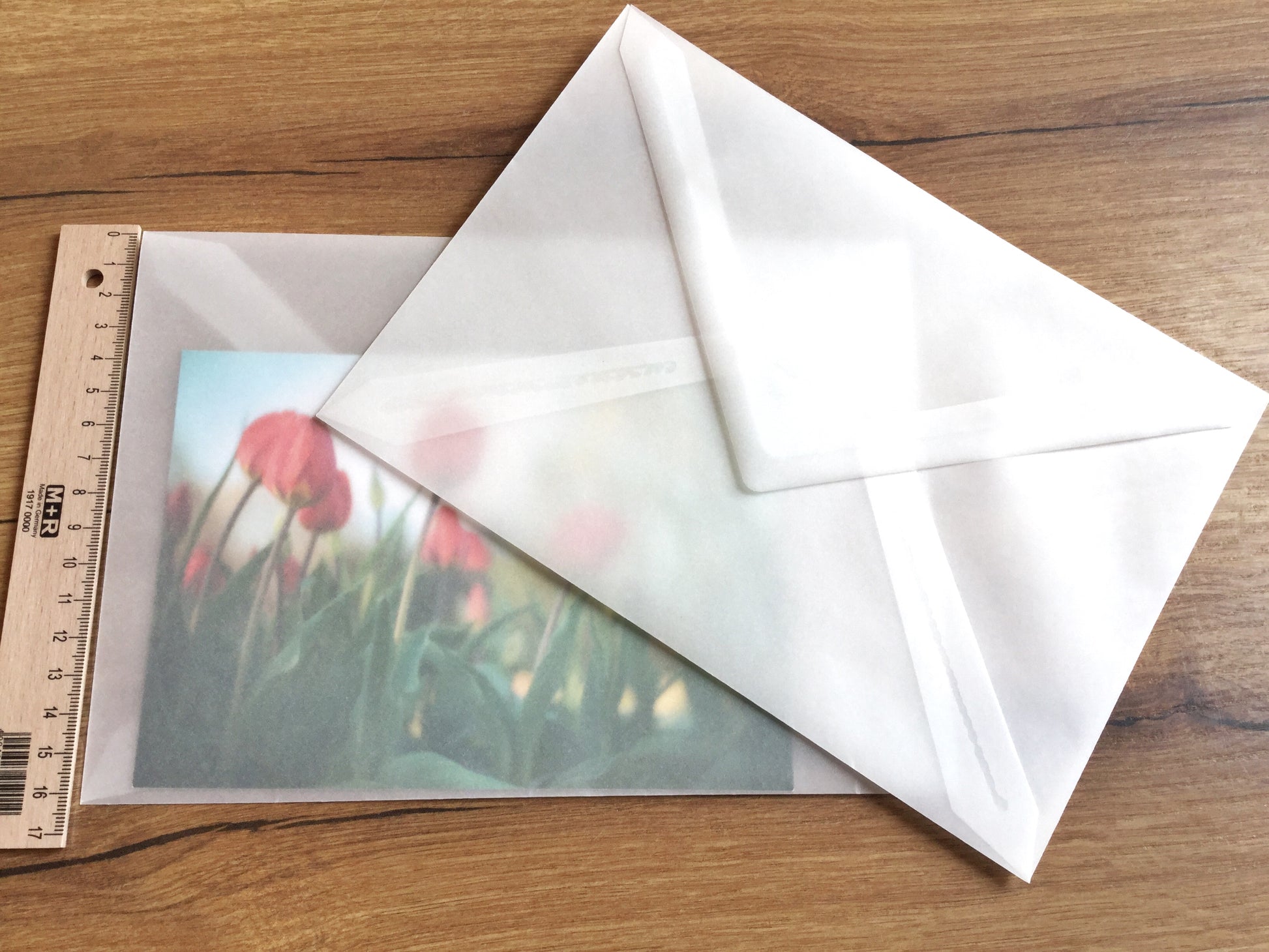 C5-Kuvert in transparent-weiß mit nassklebender Spitzklappe.