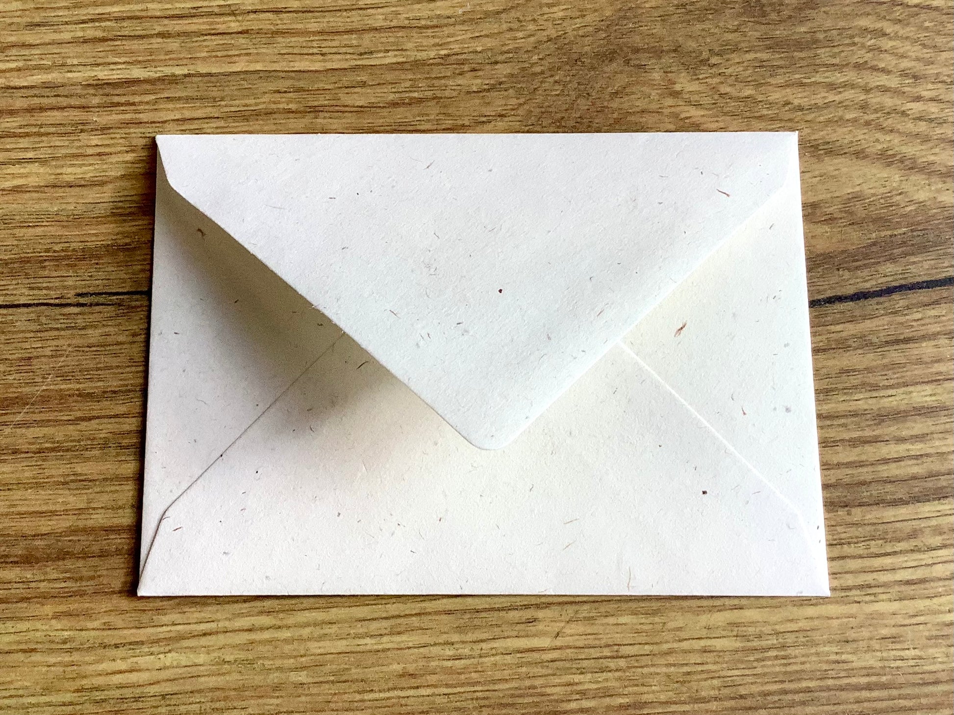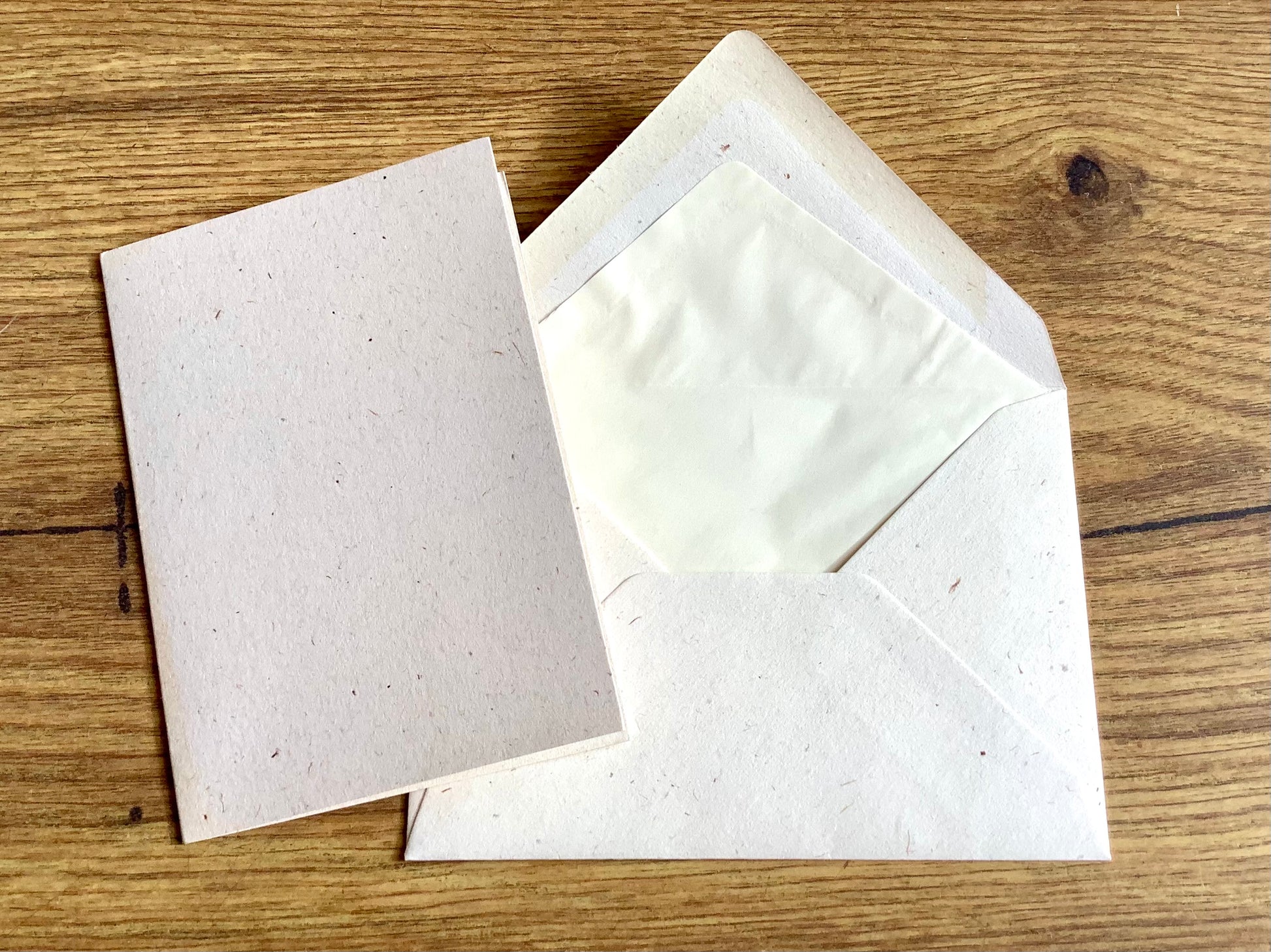 - Der kleine C7-Umschlag hat eine nassklebende Spitzklappe (ca. 8 x 11 cm groß), das Papier hat eine Grammatur von 100 g/m² mit Seidenfutter (Paperado)