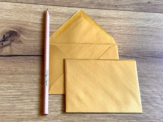 Kleiner goldener Briefumschlag in DIN C7 gold (8 x 11,5 cm).