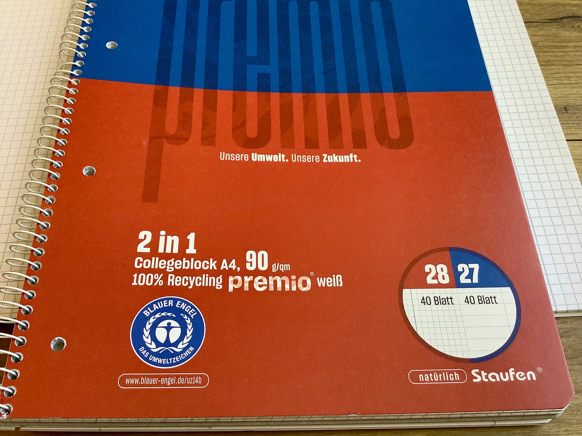 "premio" ist die ökologische Premium-Serie der Marke Staufen: hochweißes Recyclingpapier mit 90 g/m²: Darauf kann man auch mit Tinte gut beidseitig schreiben, ohne dass es durchschimmert.