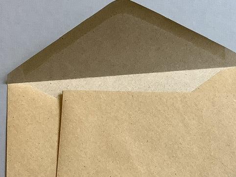 naturbrauner Briefumschlag aus festem rauen Recyclingpapier mit weißem Weihnachtsaufdruck