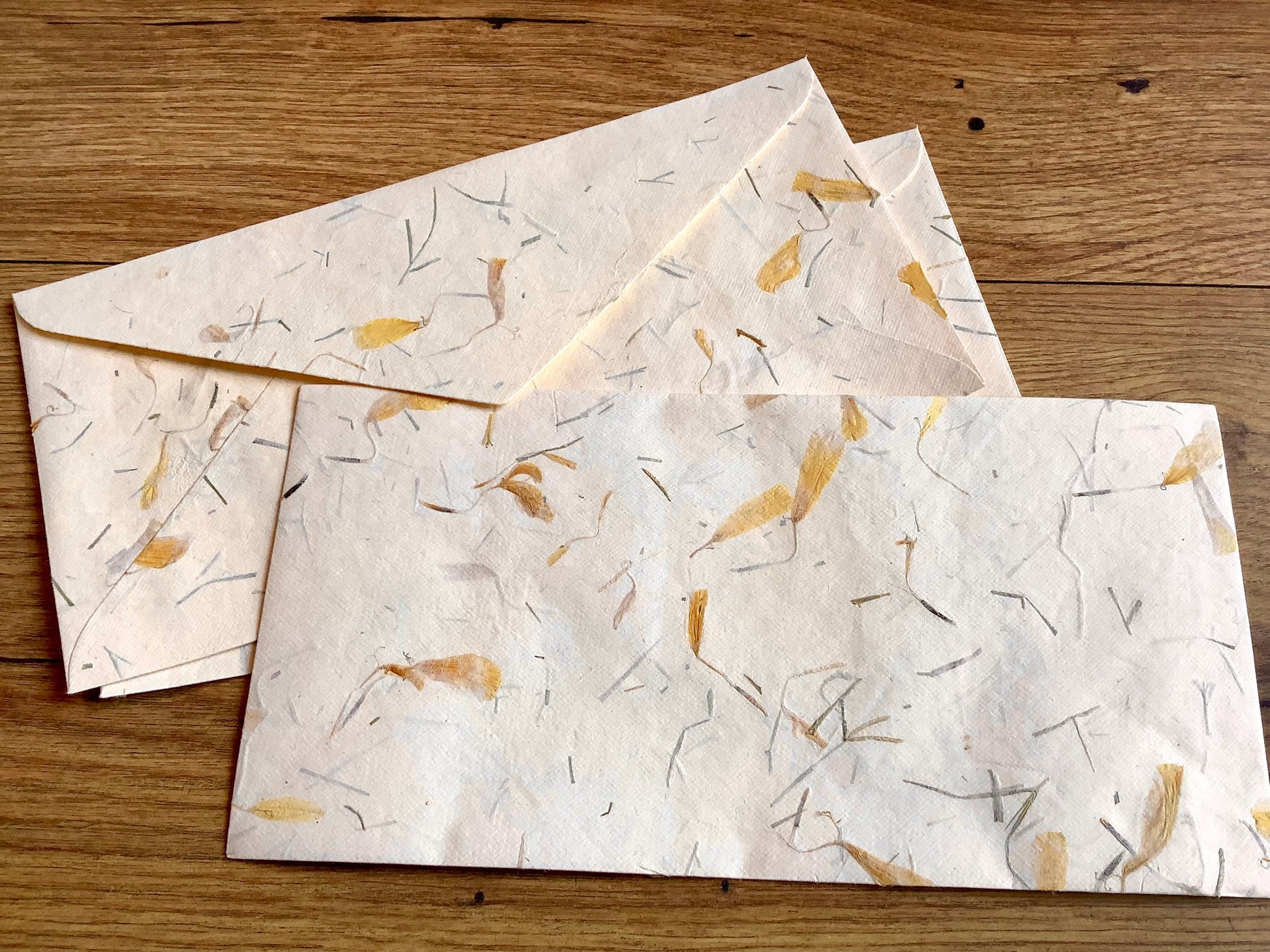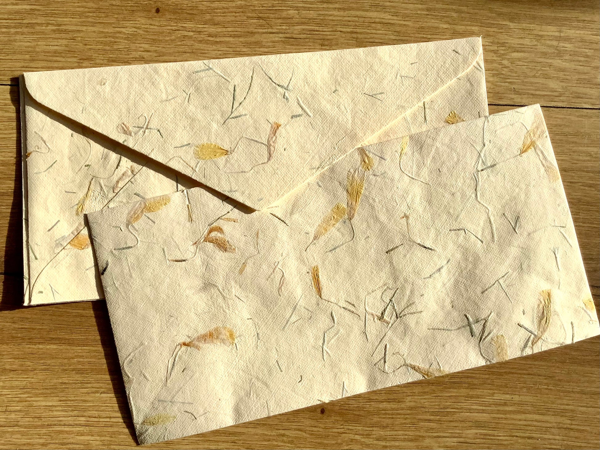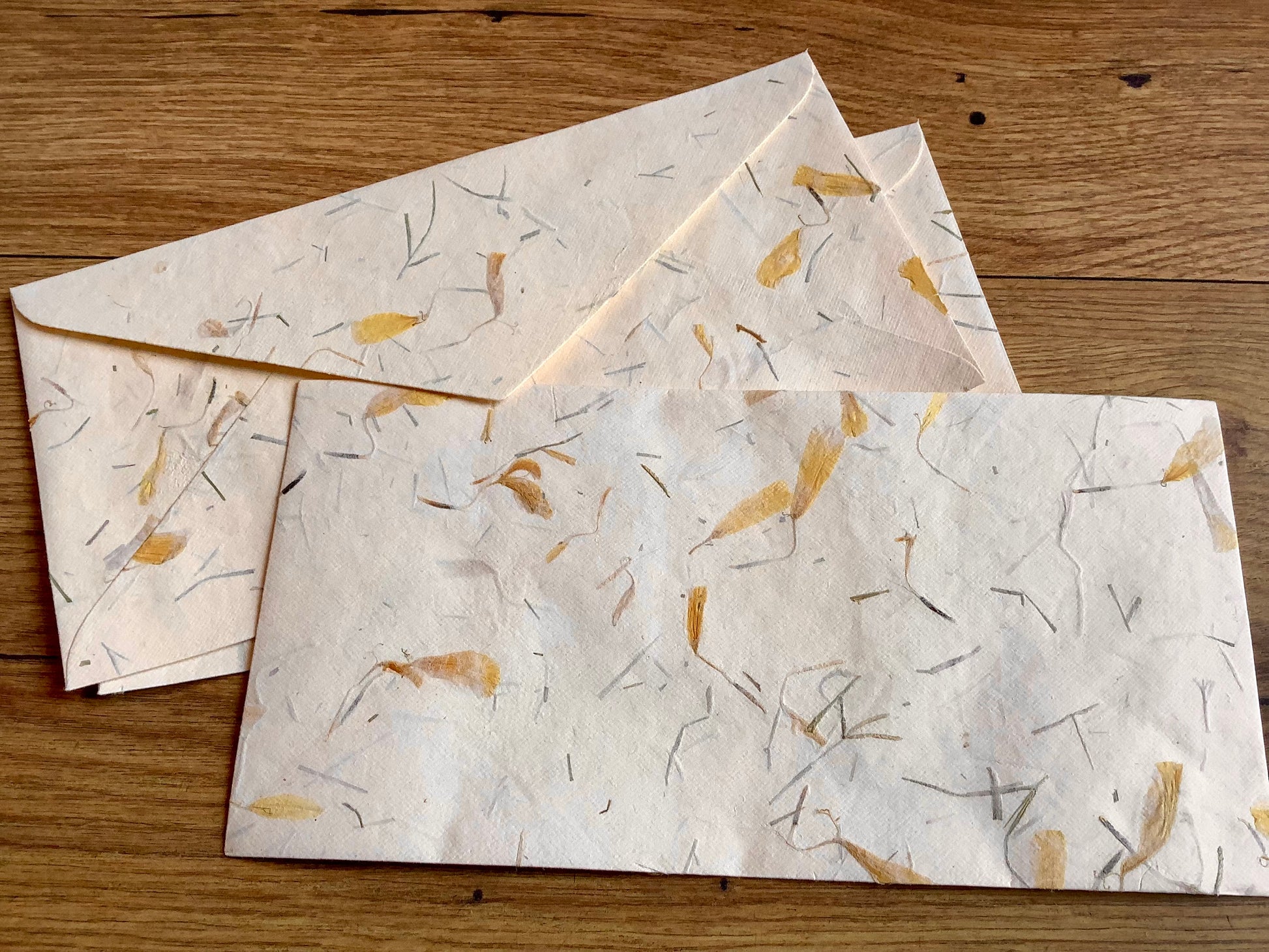 Lange Briefkuverts aus handgeschöpftem Büttenpapier aus Baumwolle