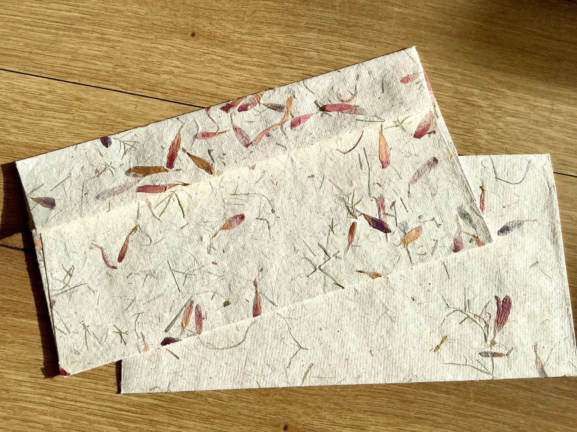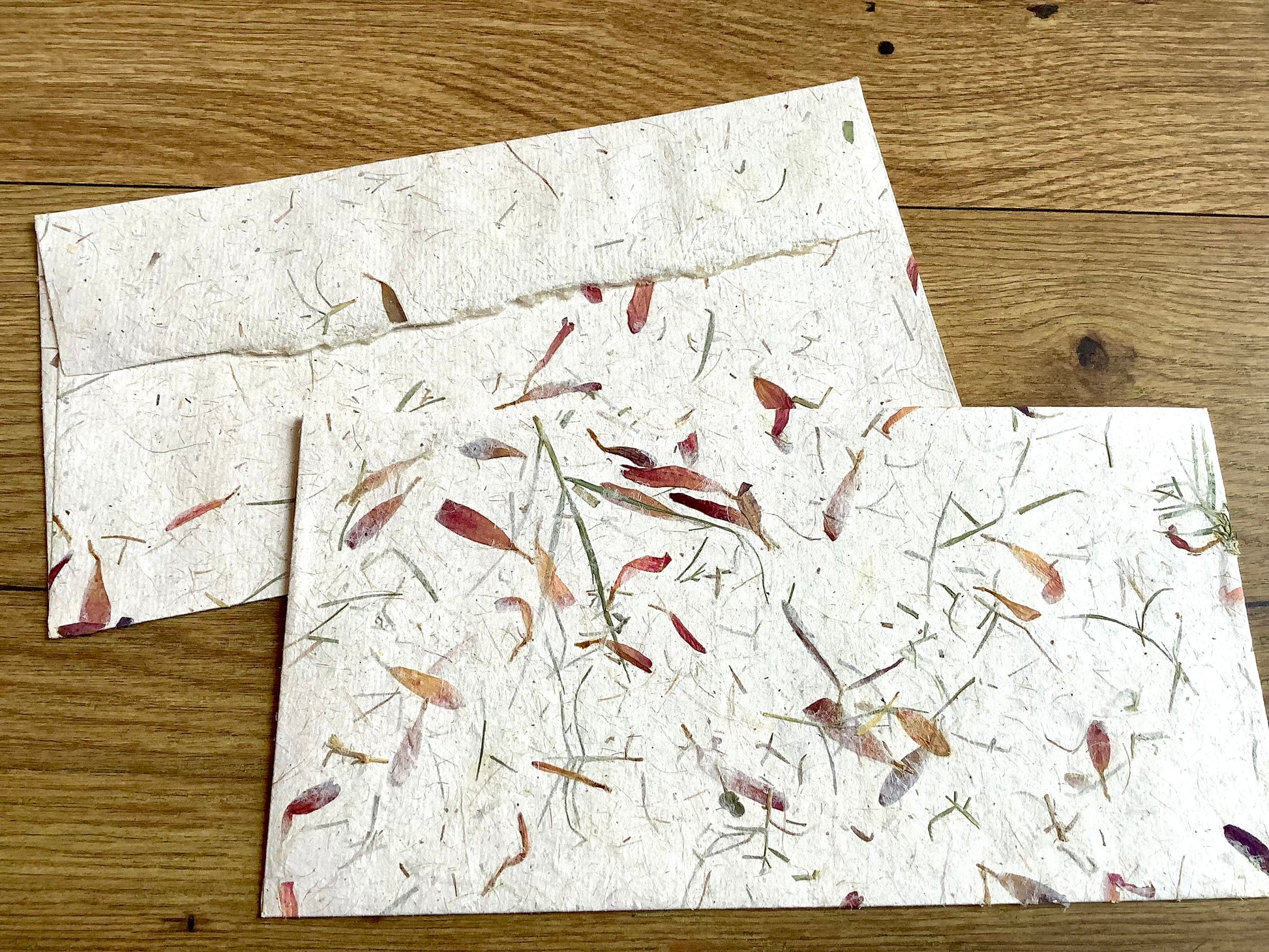 Lange Briefkuverts aus handgeschöpftem Büttenpapier