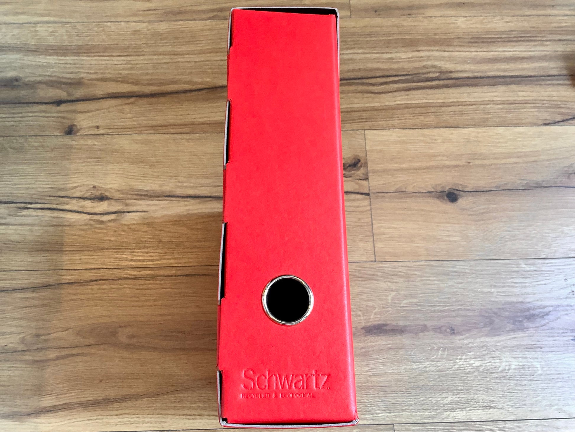 - durch ein Metallgriffloch an der kurzen Seite lässt sich die Box einfach aus dem Regal ziehen