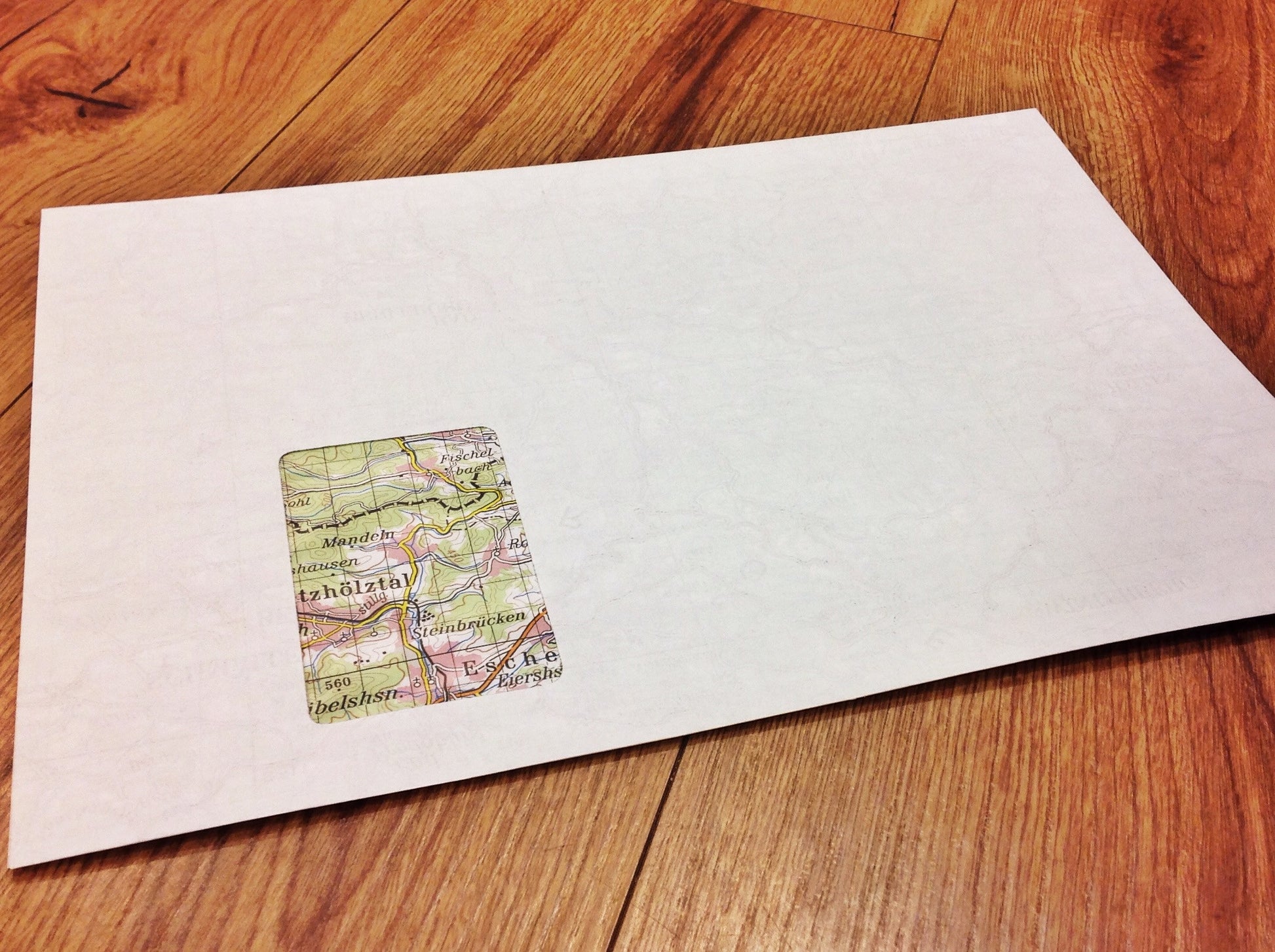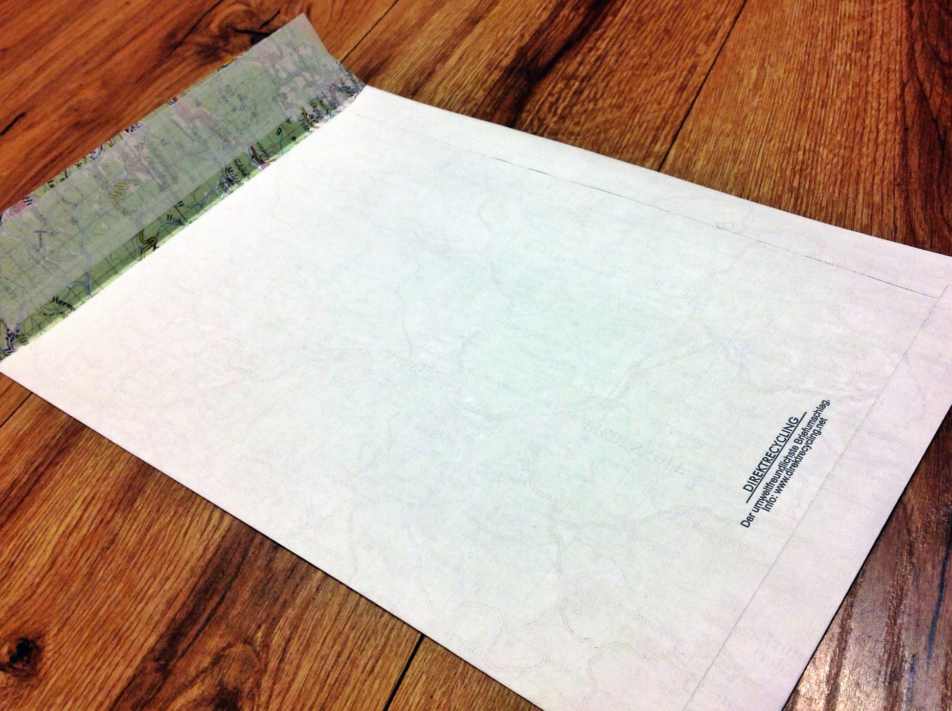 Die umweltfreundlichste Briefhülle: weißer C4-Umschlag mit Fenster für A4-Papiere aus überholtem Landkartenmaterial von "Direktrecycling".