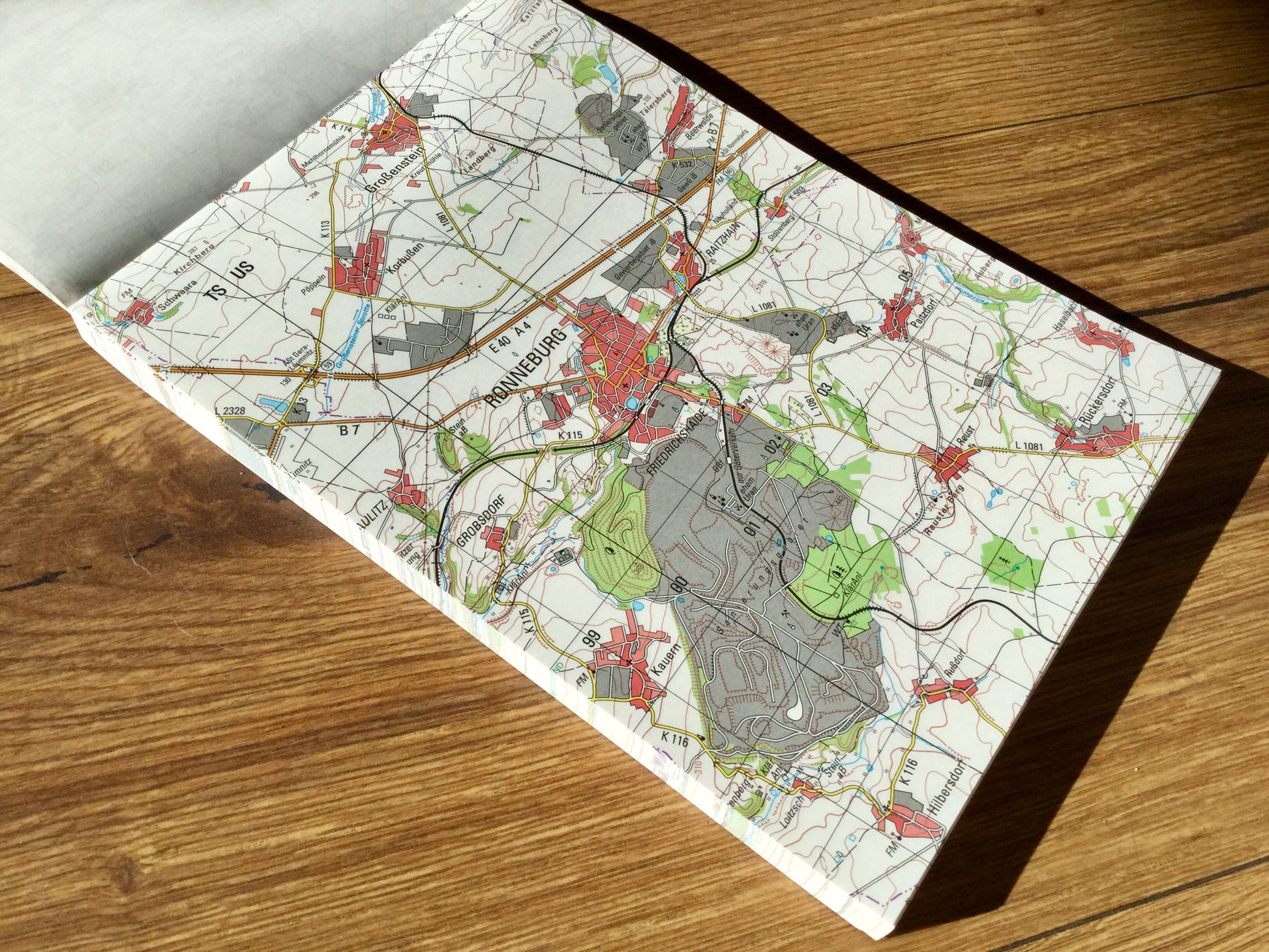 Warum umständlich recyceln, wenn es auch ganz direkt funktioniert? Dieser Gedanke steckt hinter den Produkten der Firma DirektRecycling. Der Rohstoff Altpapier (in diesem Fall überholte Landkarten) wird sofort weiterverarbeitet - ohne die sonst übliche Papieraufbereitung und den damit verbundenen Einsatz von Energie, Chemie und Wasser. Zudem verleiht der originale Landkarten-Aufdruck auf der Rückseite diesen praktischen Notizhelfern einen einzigartigen Charme.