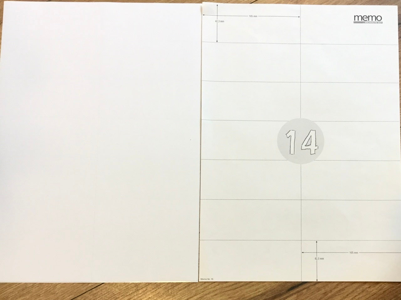- 14 Aufkleber pro A4-Bogen (also 1400 im 100er-Pack)