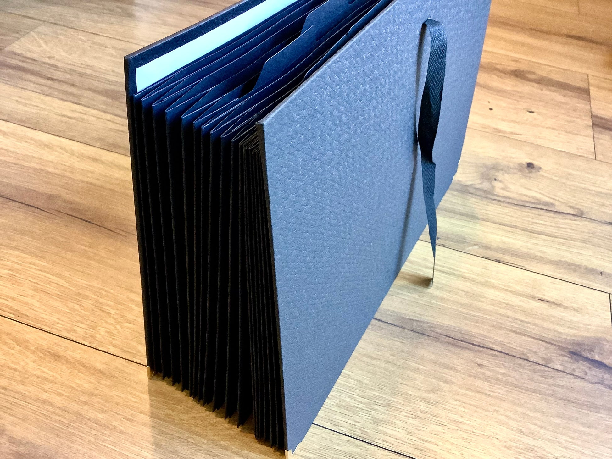 Die Dokumentenmappe von Exacompta ist mit 18 dehnbaren Fächern aus schwarzem Karton von Clairefontaine ausgestattet. Sie bieten eine hohe Ablagekapazität.