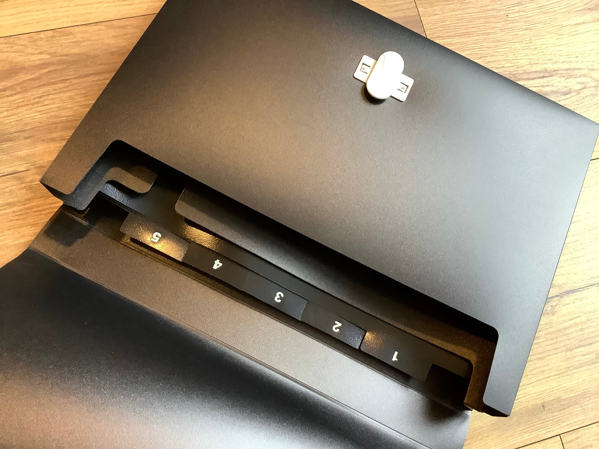 - 5 Fächer mit Beschriftungstaben und ein zusätzliches Fach