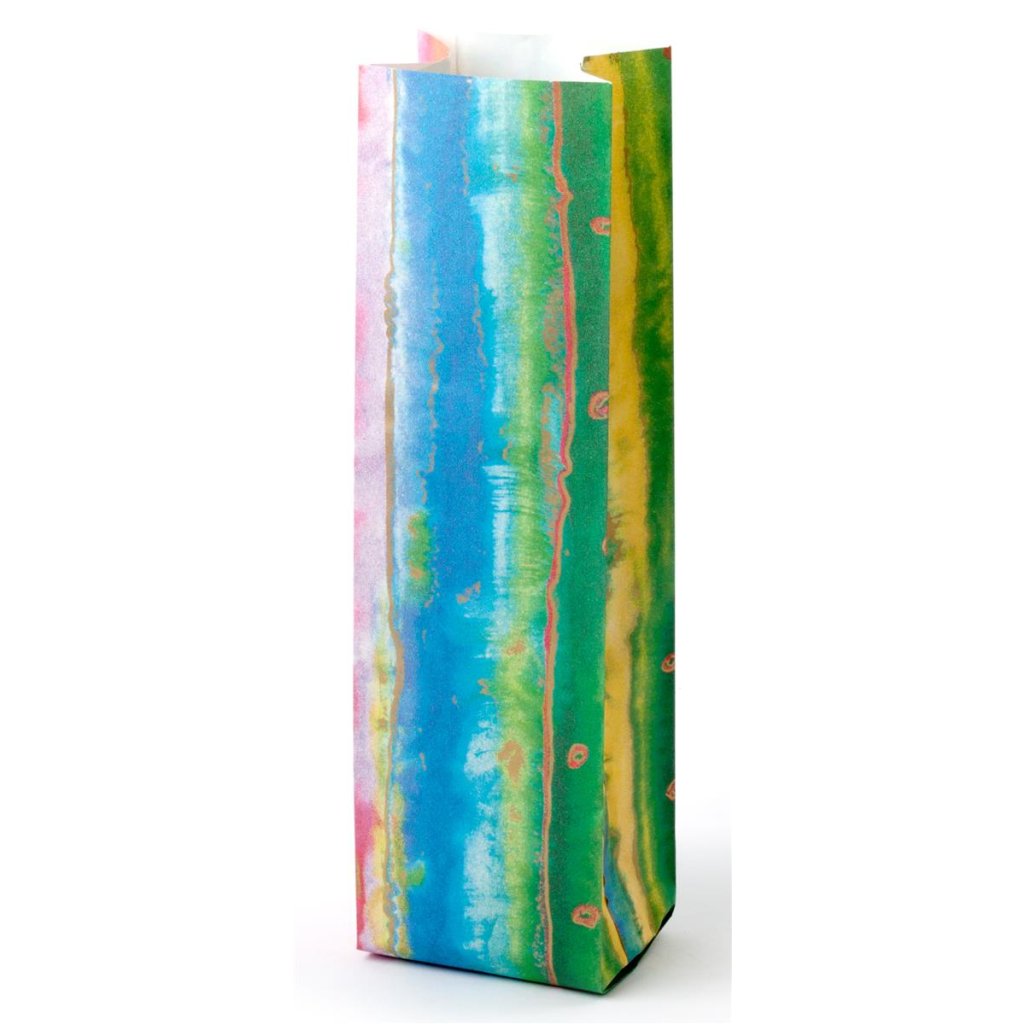 Geschenk-Faltenbeutel, eine Flaschentasche mit der Größe 11,5 x 42 cm und 8,8 cm Breite. Mit dem Regenbogenmotiv „Emotion“.