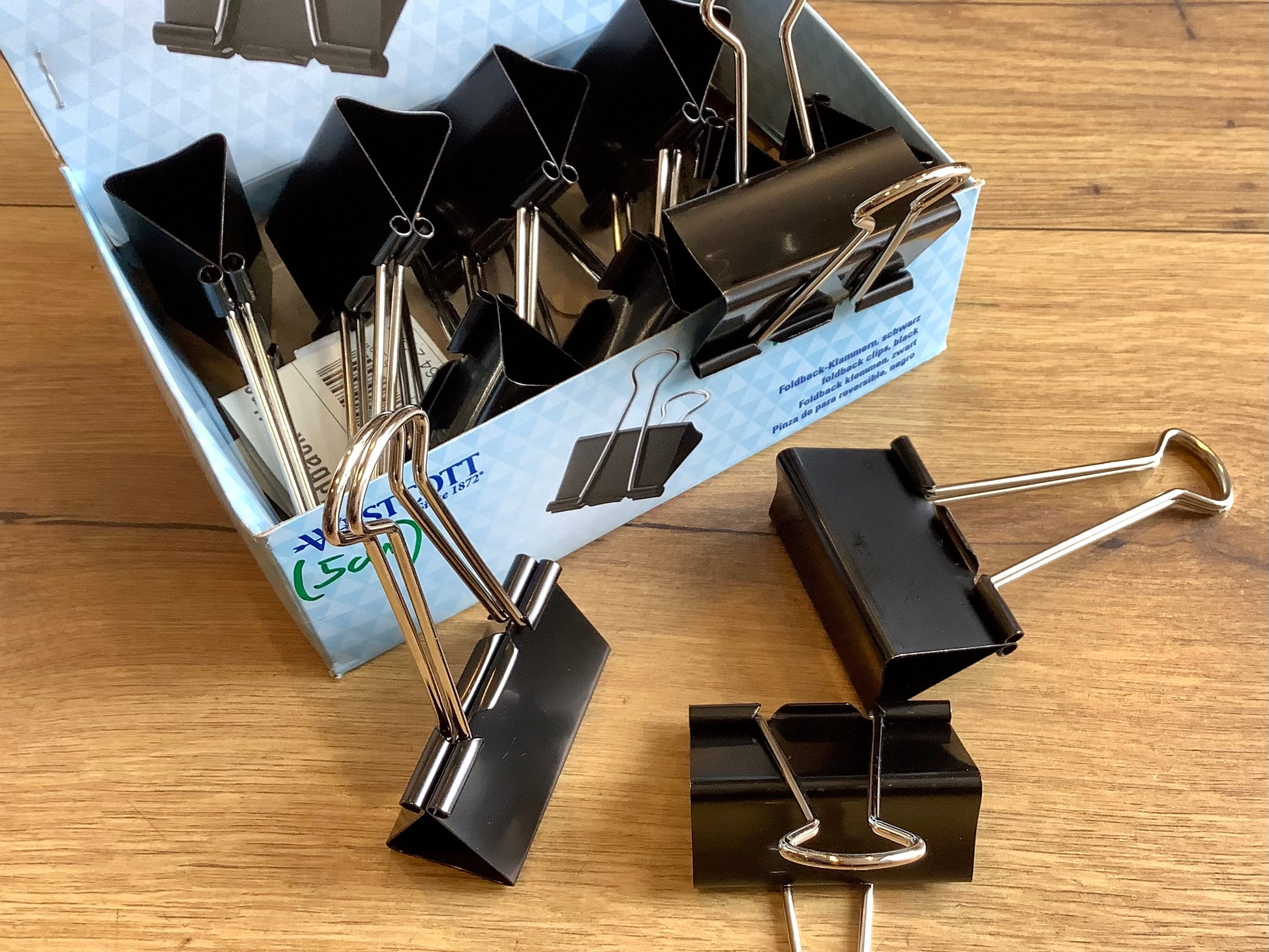 50 mm breit, schwarz, einzeln oder zu zwölft in einer Pappschachtel.