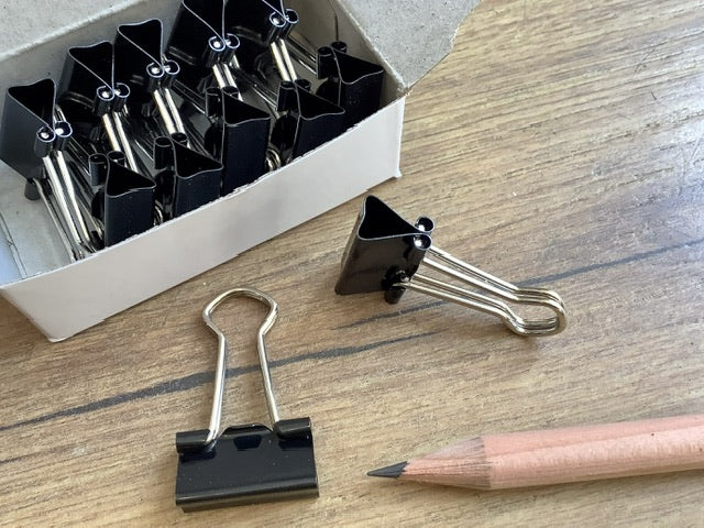 12 schwarze Foldback-Clips mit der Breite 19 mm (Breite des Federstahlblechs)