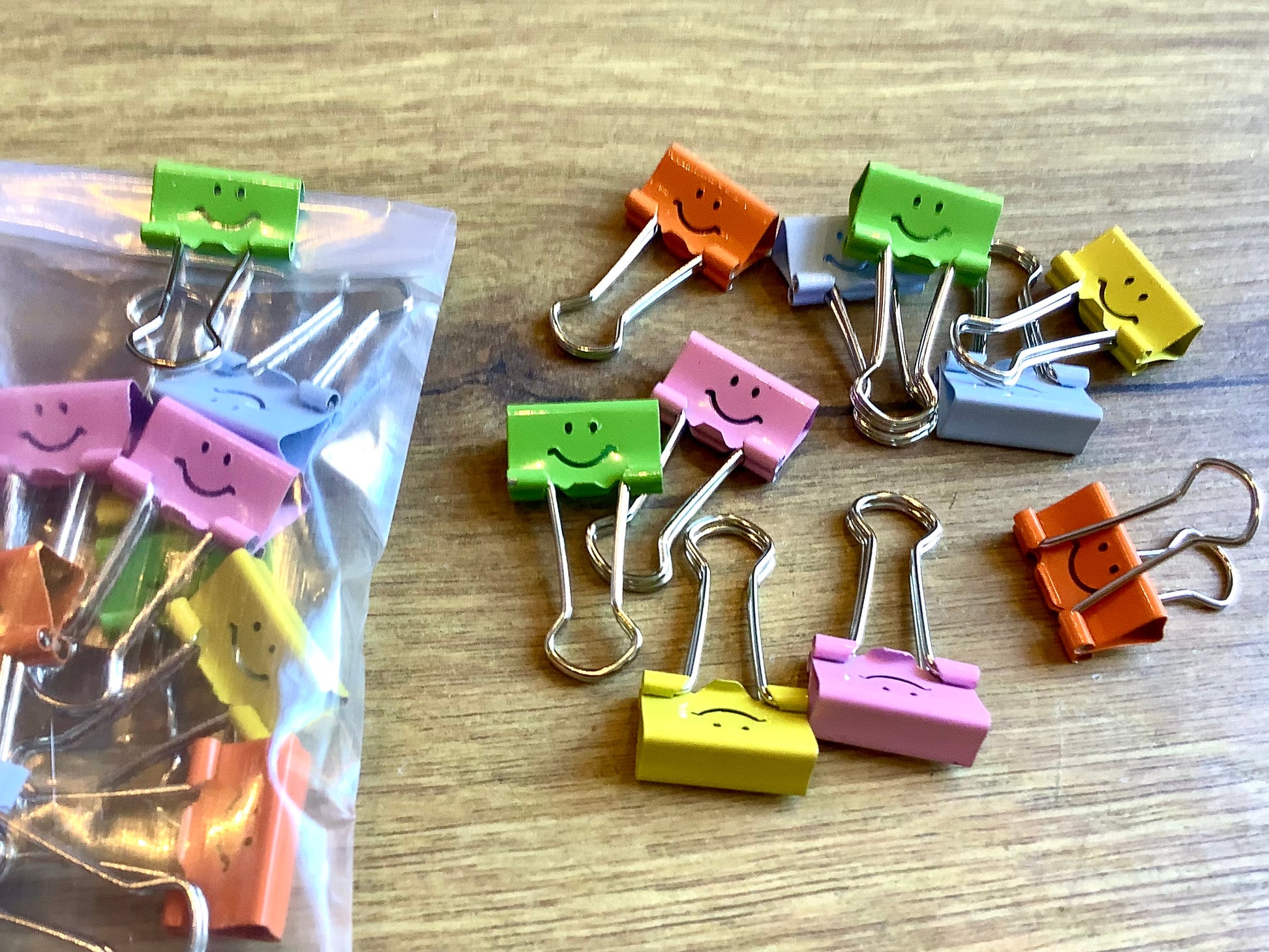 10 oder 80 fröhliche farbige Foldback-Clips aus Metall, mit denen man Zettel oder Tüten zusammenhalten oder auch Bilder aufhängen kann.