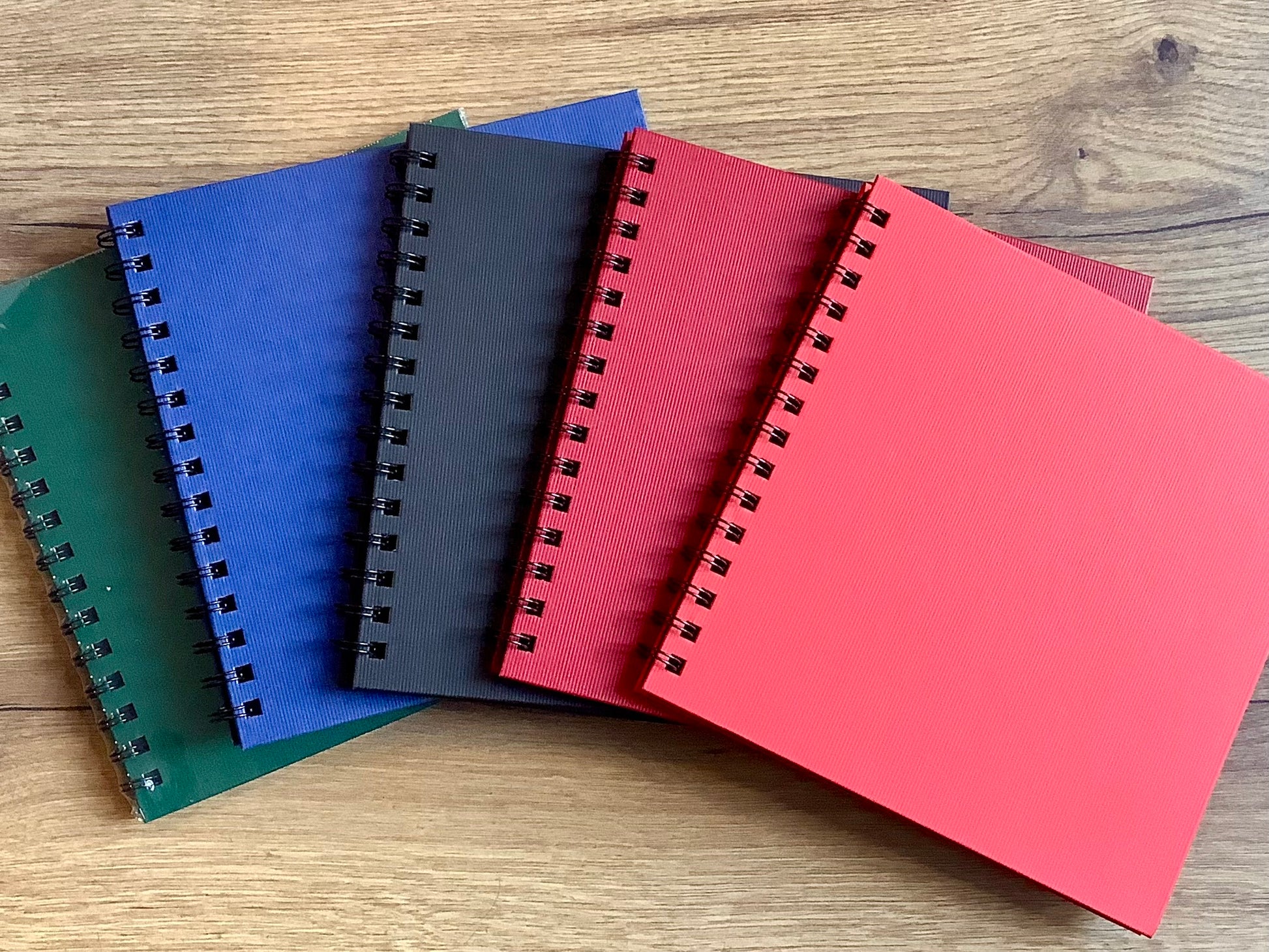 - das Cover ist außen und innen farbig kaschiert (geripptes Papier)