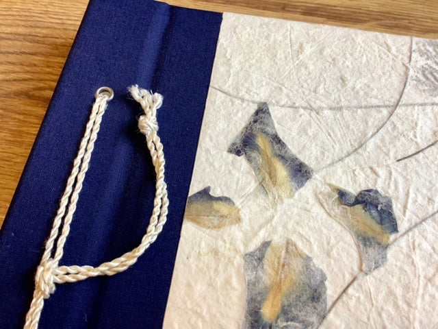 In das handgeschöpfte Papier, mit dem dieses fair gehandelte Fotoalbum kaschiert ist, sind echte Iris-Blütenblätter eingeschlossen.