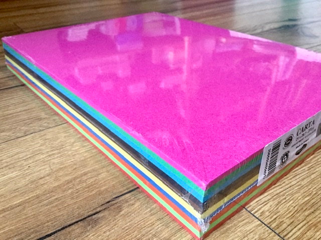 - je 10 Blatt in: rot, hellgrün, schwarz, gelb, orange, hellblau, ultramarinblau, tannengrün, braun, pink (fuchsia)