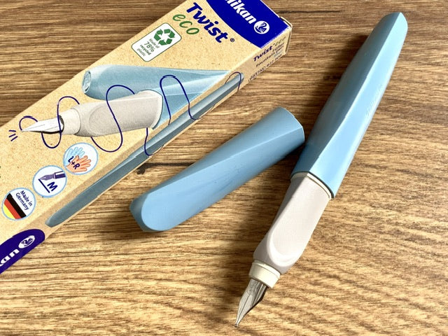 Der Pelikan Twist Eco Patronenfüller aus recyceltem Plastik ist ein robustes Schreibgerät, dass alle Anforderungen, die Schüler*innen an ihren Füller haben, gerecht wird. Und er macht optisch durch den "Twist" etwas her, fühlt sich gut an und bietet ein rundum angenehmes Schreibgefühl.