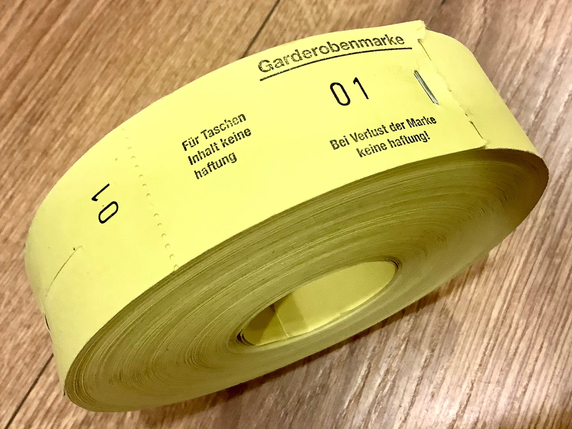 Eine Rolle mit Doppel-Nummern 00001 bis 00500 - zum Beispiel als Garderobenmarke oder für Lose.
