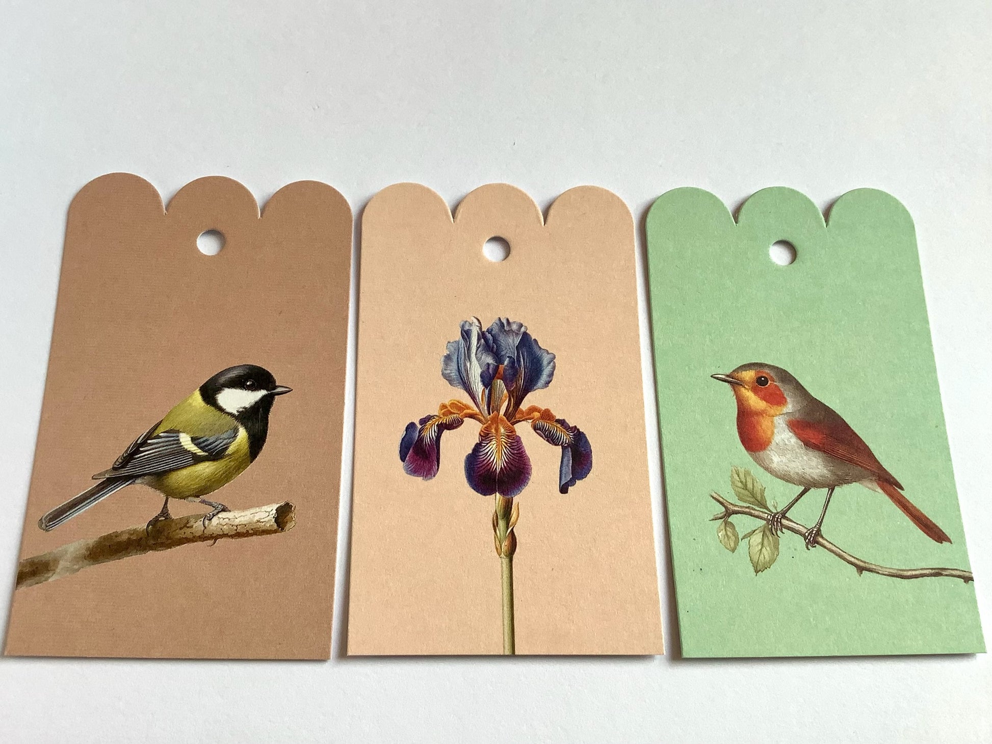 Geschenkanhänger mit wunderbar modernisierten alten Tier- und Pflanzenmotiven von „30 x 40“ aus Mecklenburg-Vorpommern.