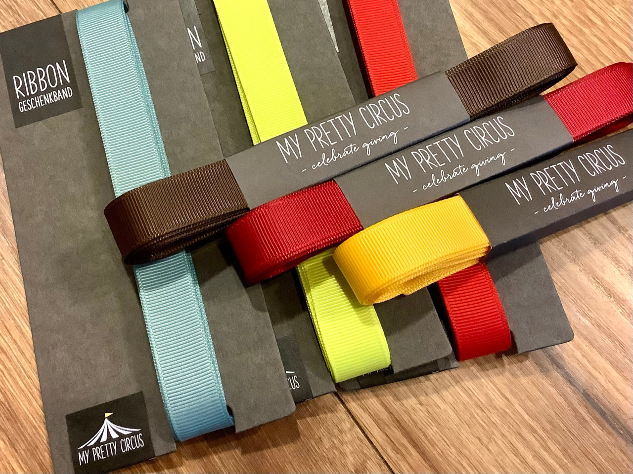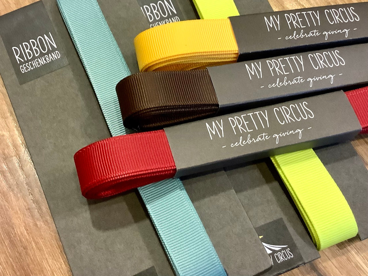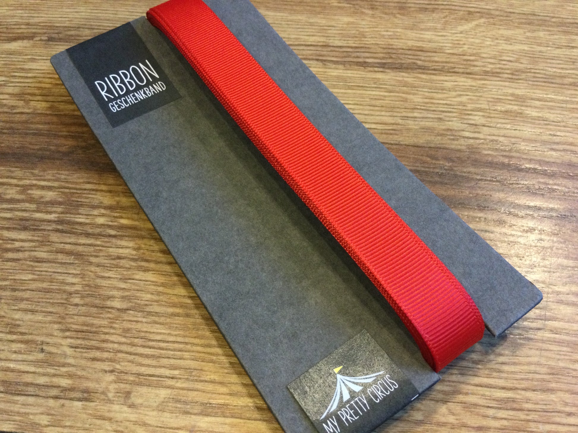 Fünf Meter langes und ca. 16 mm breites Textil-Geschenkband von My Pretty Circus, Frankfurt.