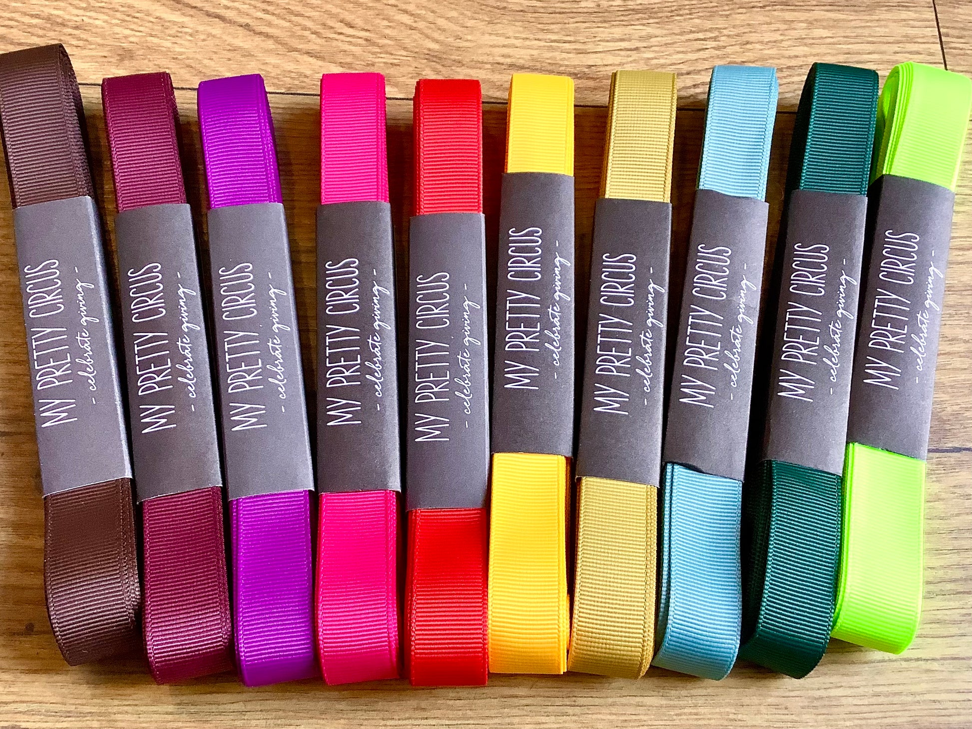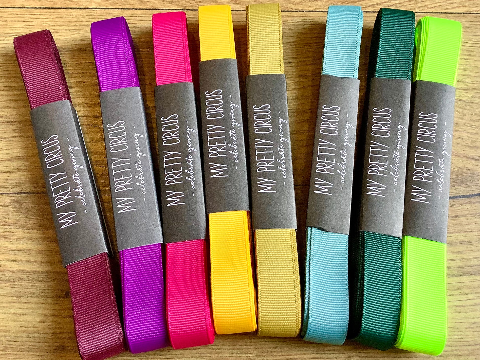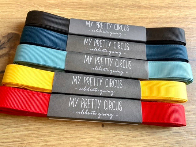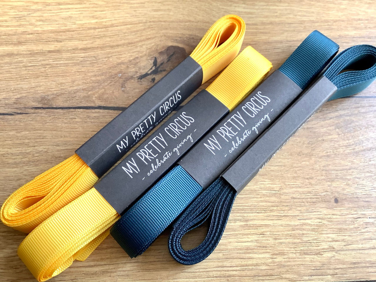 Fünf Meter langes und ca. 16 mm breites Textil-Geschenkband von My Pretty Circus, Frankfurt.