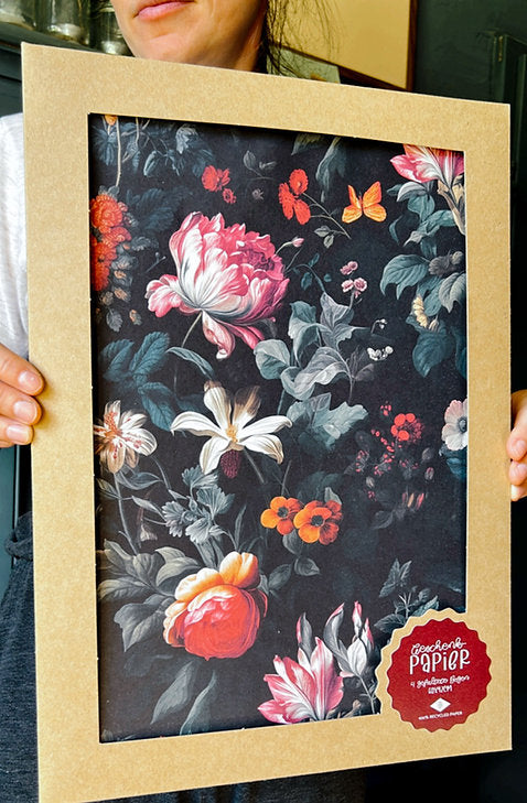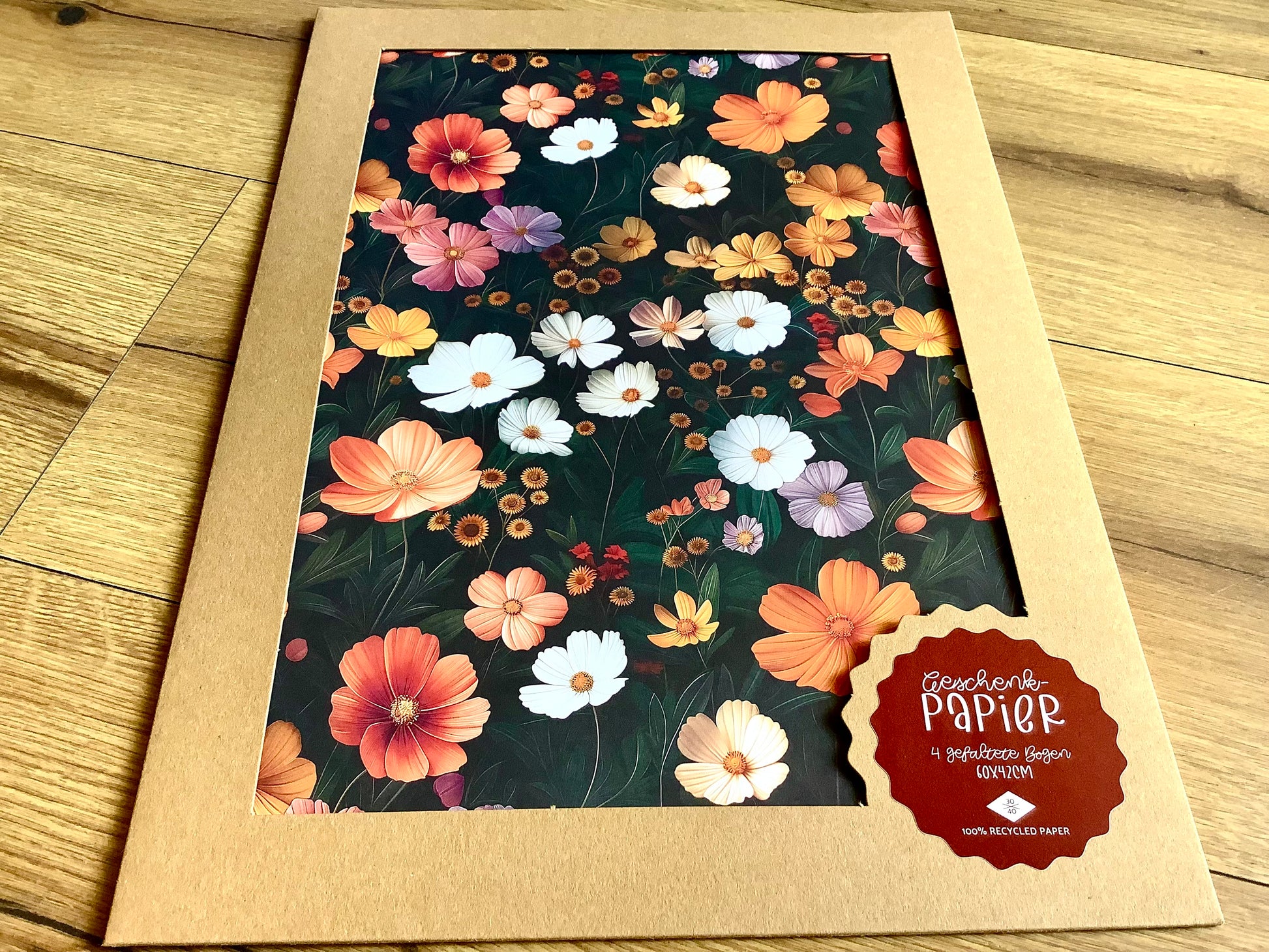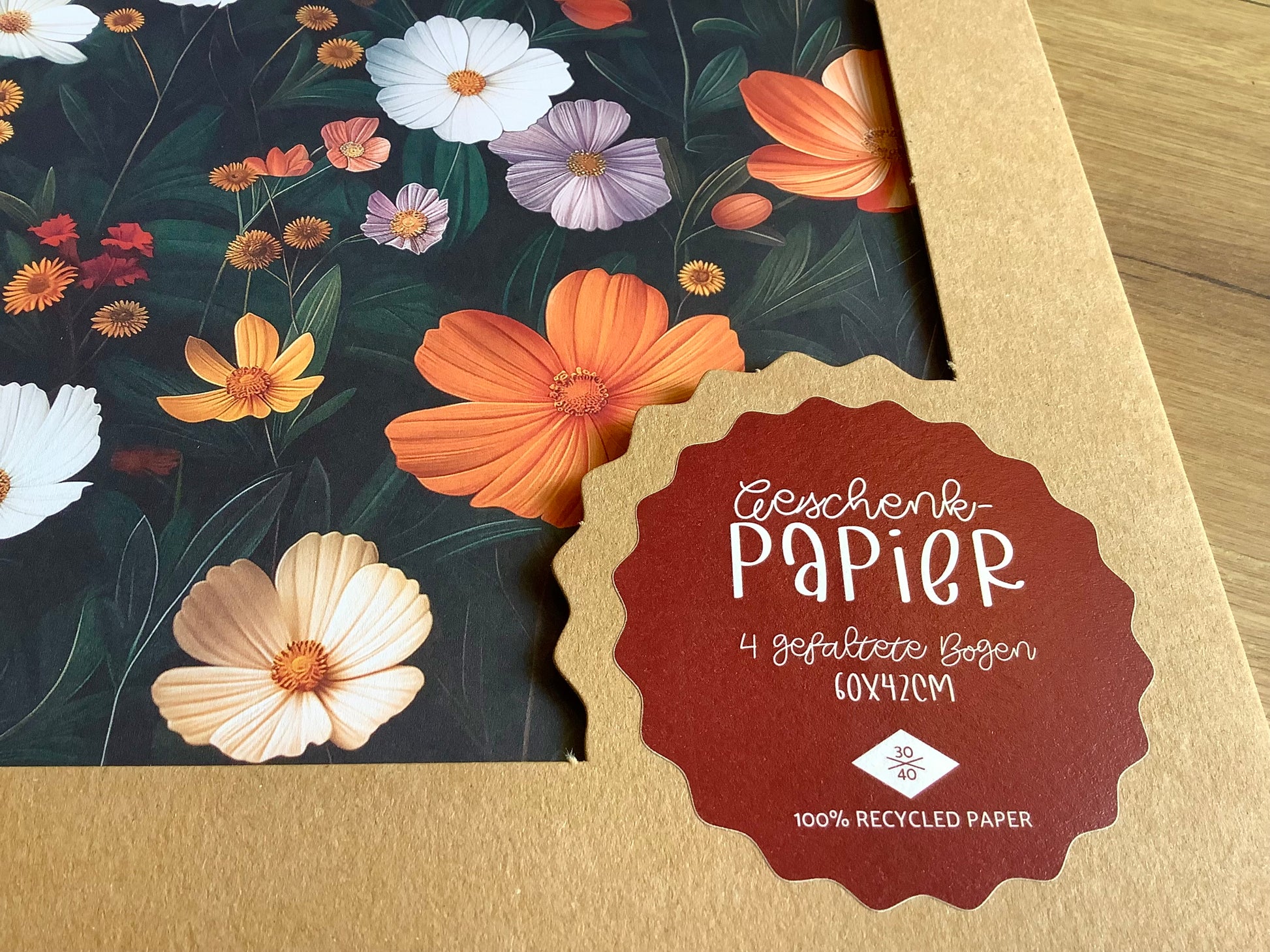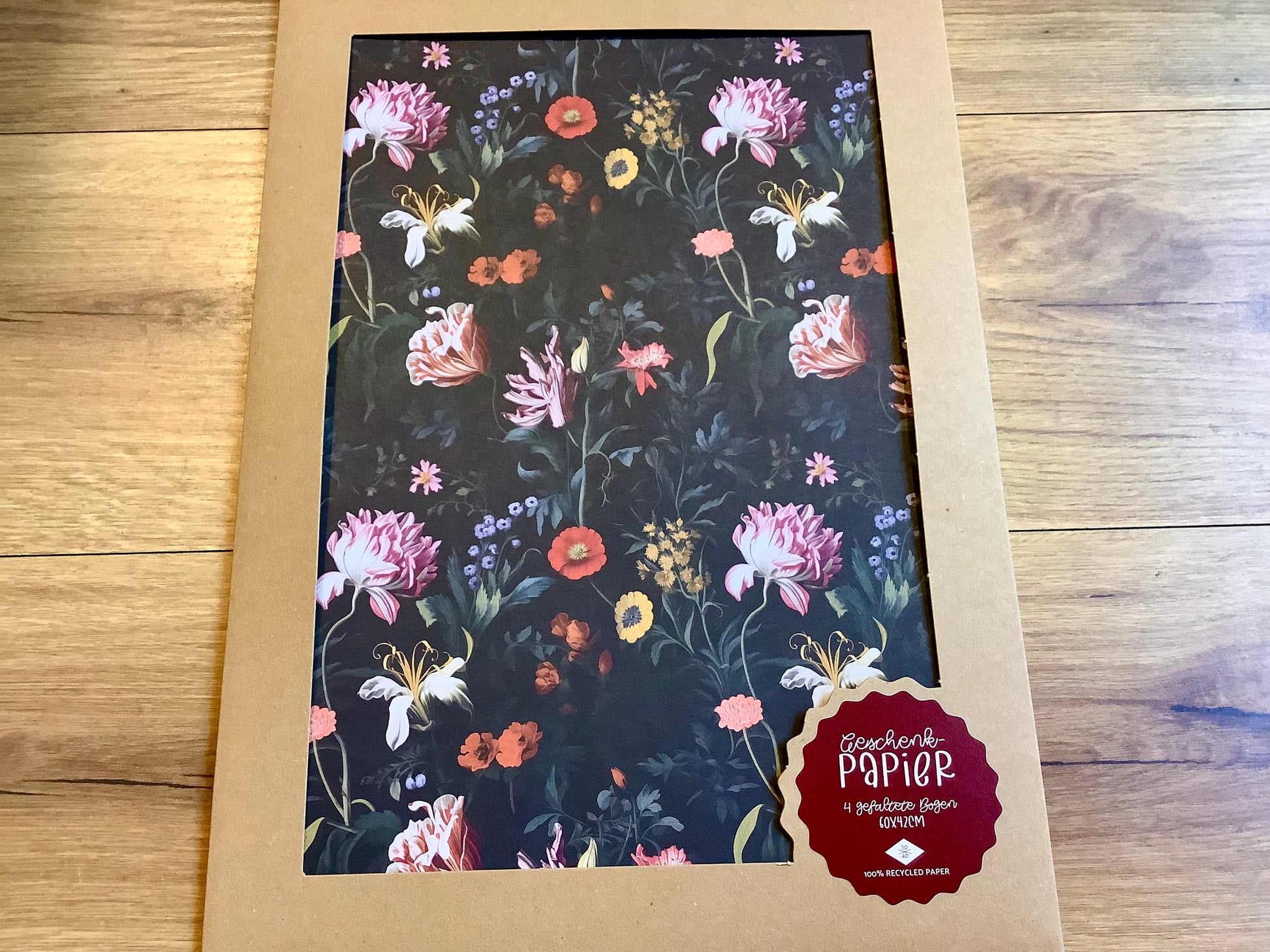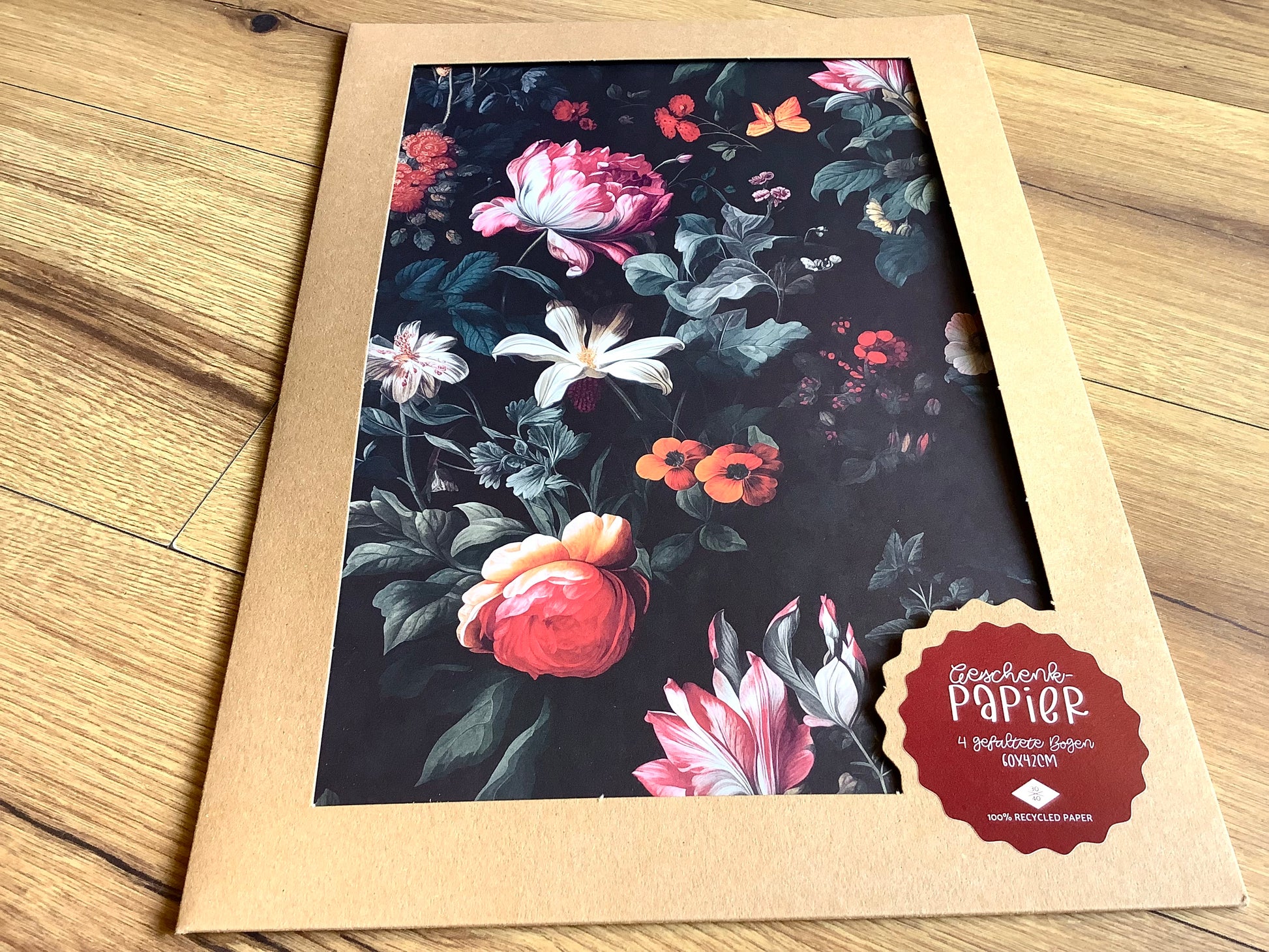Geschenkpapier mit opulentem Blumendekor von „30 x 40“ aus Mecklenburg-Vorpommern.
