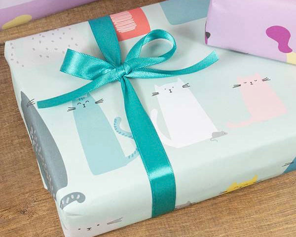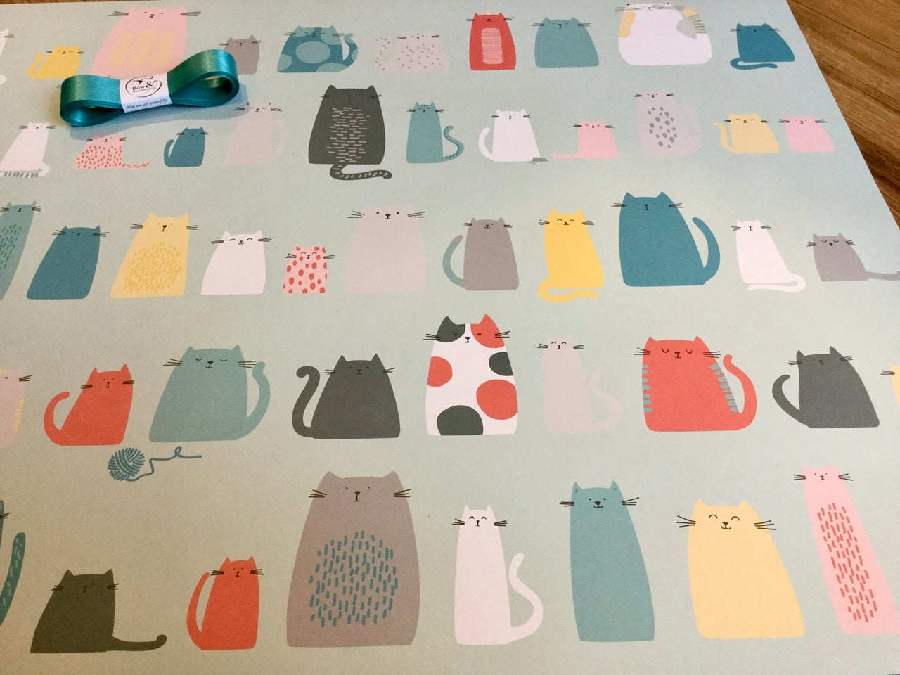 Geschenkbogen mit witzigem Katzen-Aufdruck von Bow & Hummingbird aus Hamburg.