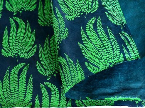 Geschenkpapier Farn grün auf indigo Lokta Lamali